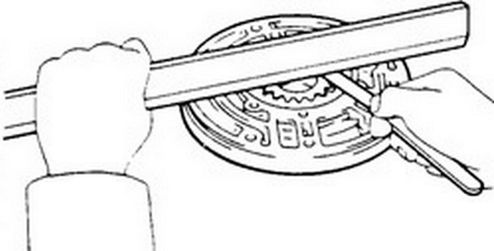 Используя стальную линейку и щуп, измеряем боковой зазор обеих шестерён.