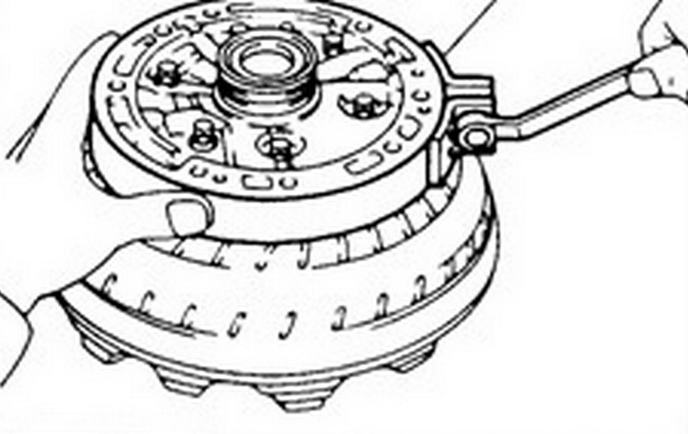 13. Устанавливаем корпус насоса на гидротрансформаторе.