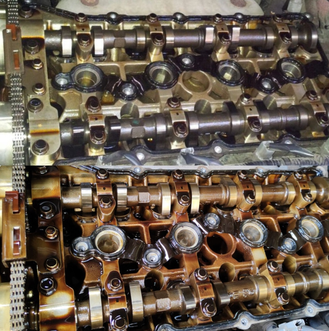 А от чего же двигатель лакируется в данном случае? Вот автор в предыдущем после выкладывал коллаж до и после "как бы" хорошего масла.