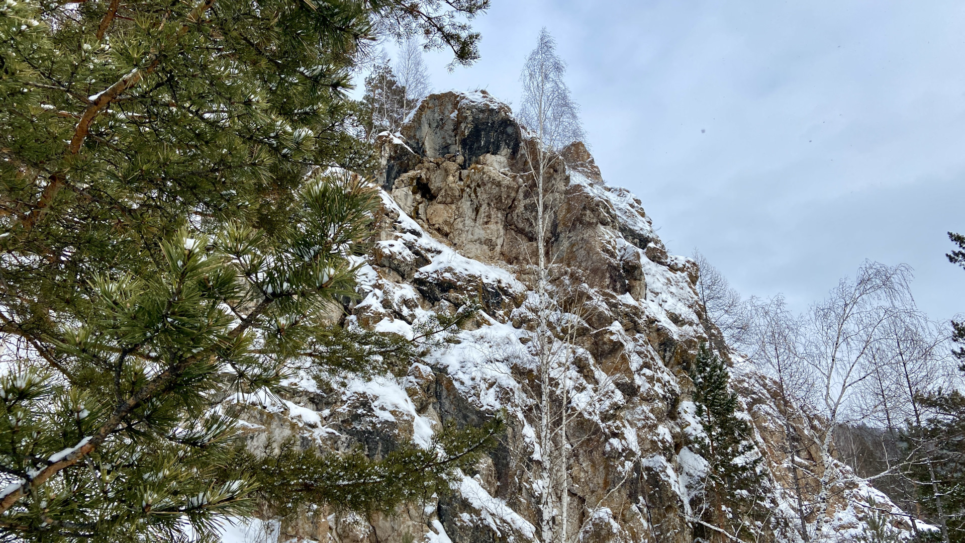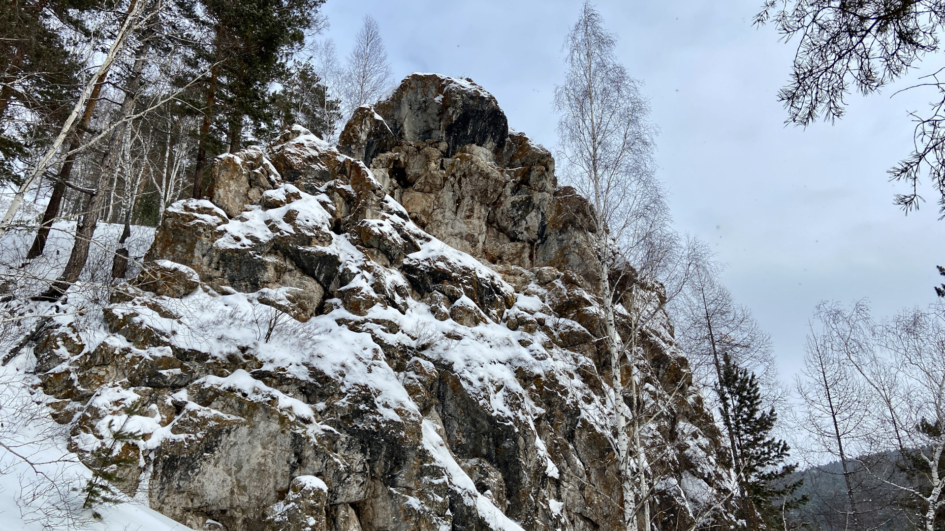 Полюбовались тайгой, полазали по сугробам и даже в нарушение правил, попробовали в одном из гротов развести небольшой костерок…но только провоняли дымом))