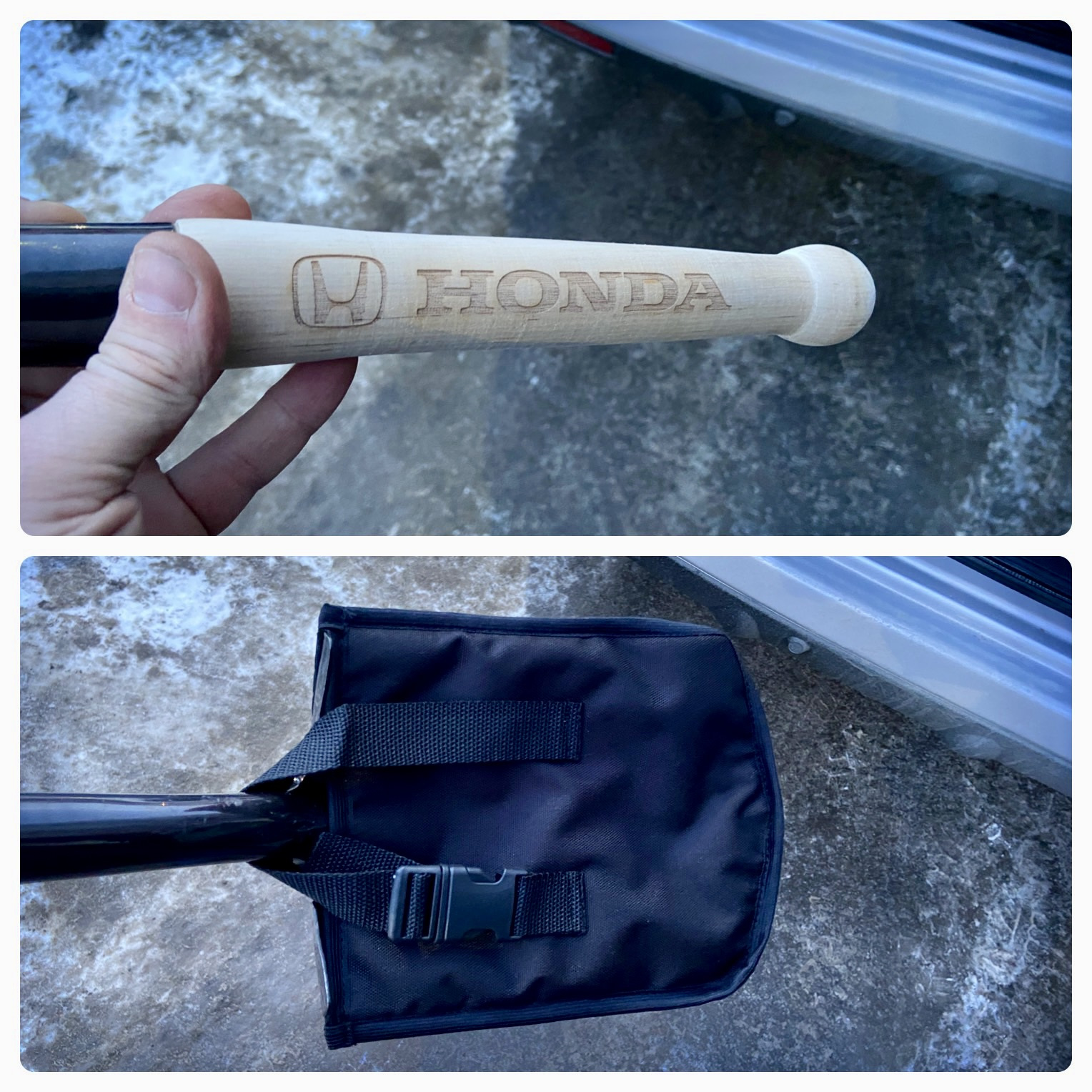 Всегда возил с собой "саперную" лопату складную) Сейчас купил себе небольшую совковую примерно 70см длинной)