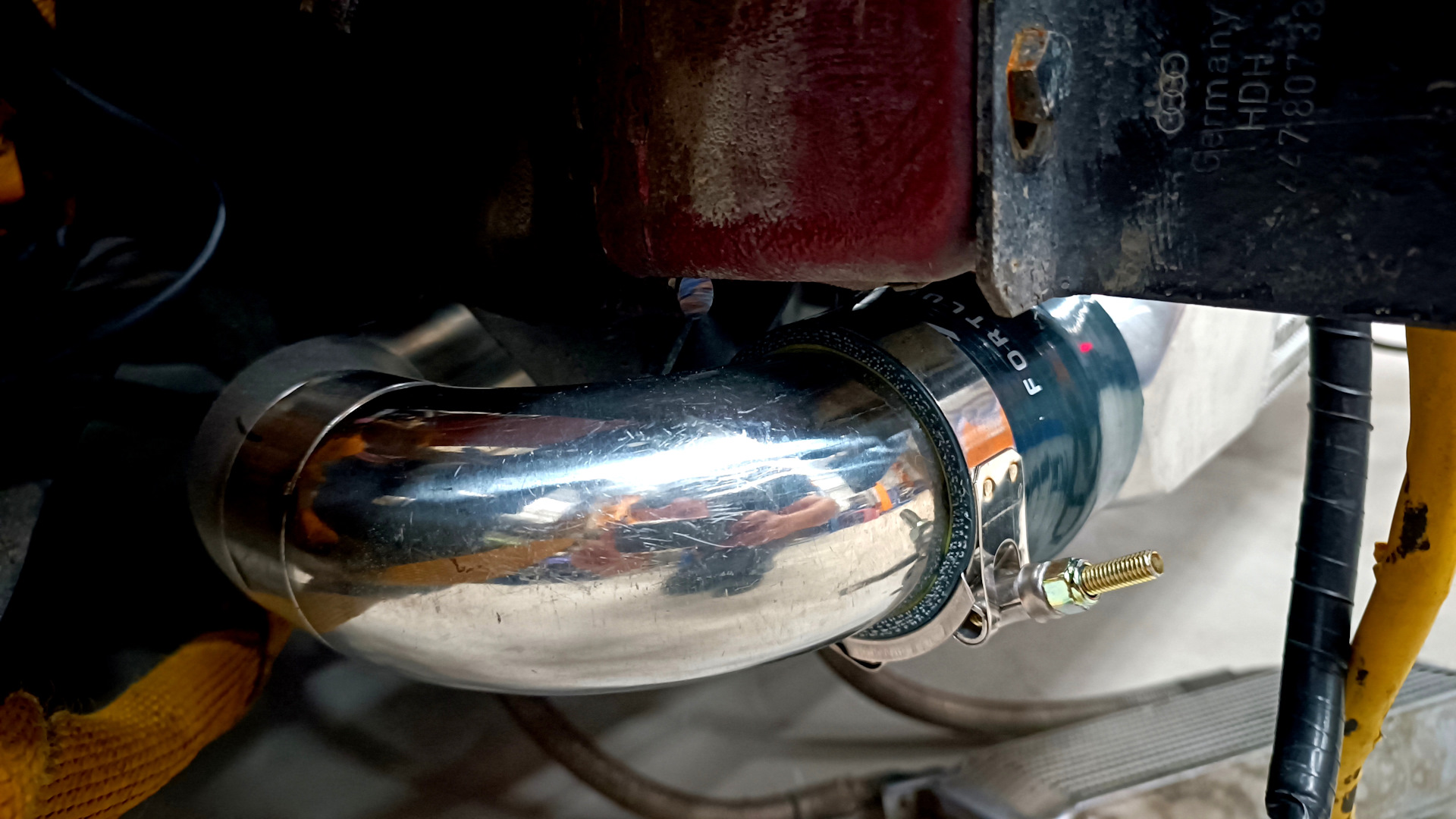 Когда то ребята из Weber Weld Works сварили мне пайп из нержавейки от воздушного фильтра к турбине, 76мм. Его я решил так же обновить полировкой. Теперь у меня полный комплект впуска из нержи. Вживую это выглядит очень круто.