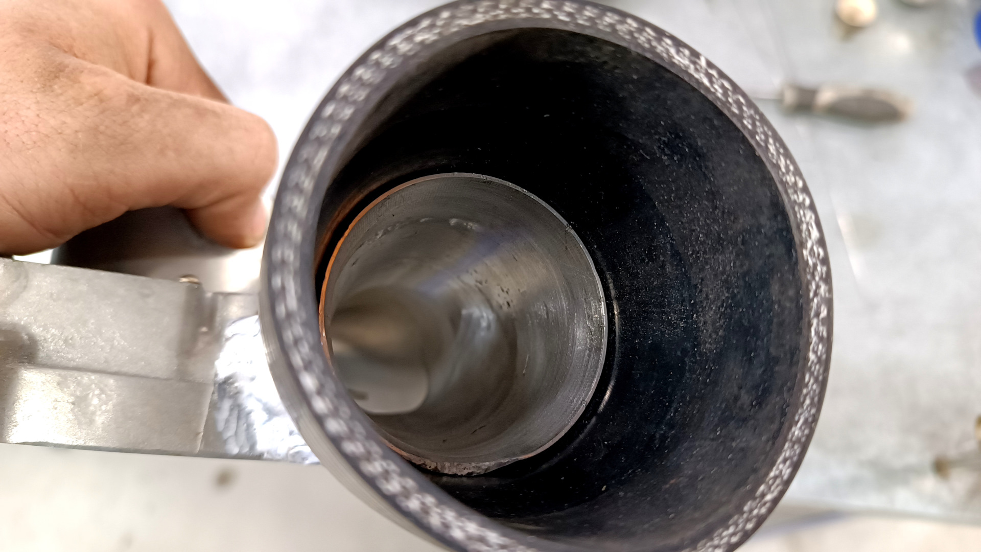 Довольно резкий и грубый переход с 50мм на 63мм, что мне и не понравилось. Решили переварить выход с холодняка на 55мм и облагородить все внутри. Вот что получилось.