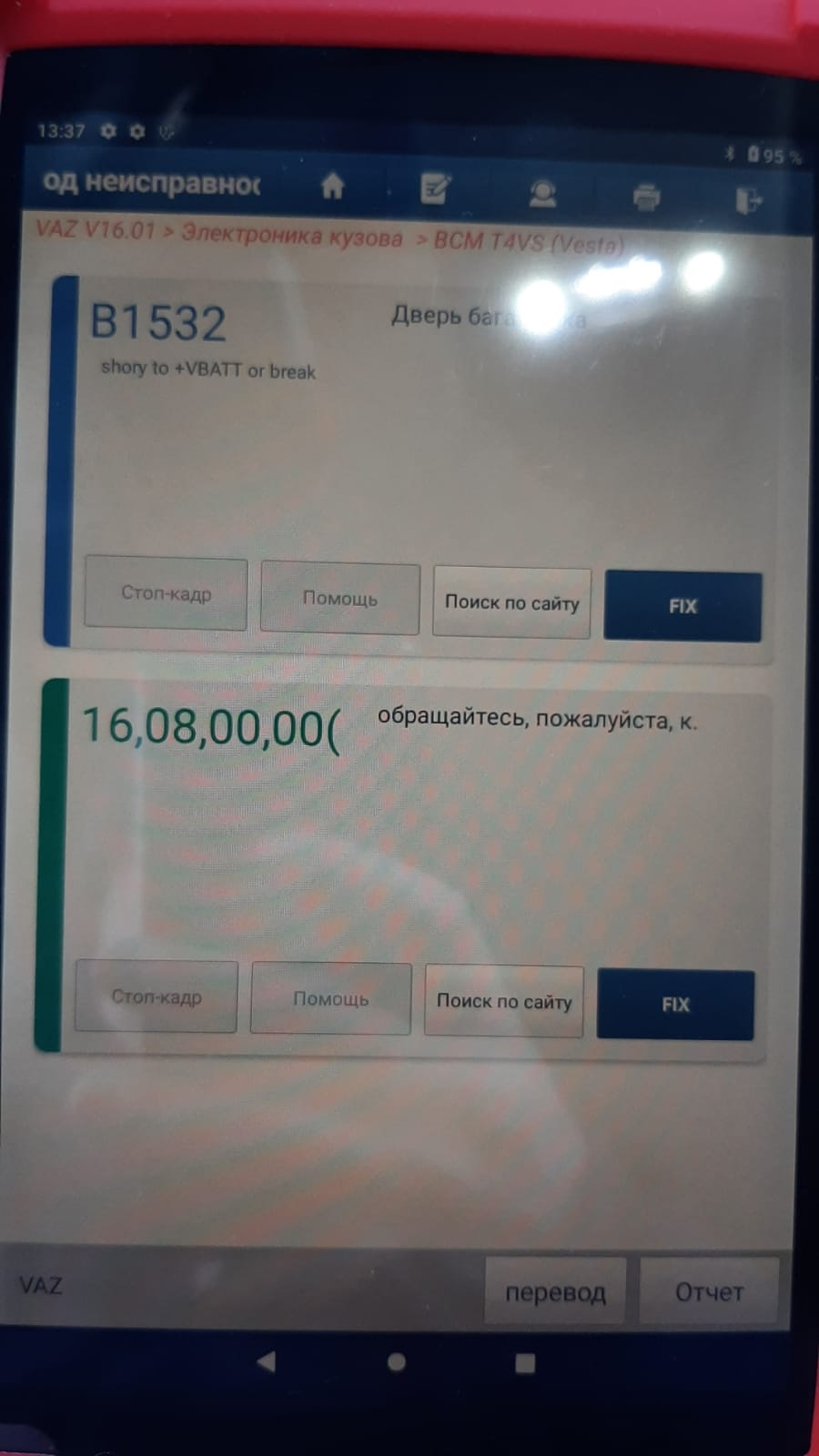 Здравствуйте Вестоводы! Хочу поделиться такой проблемой и услышать от Вас советы:У меня Веста 1.8 на роботе 2016 года, недавно ехал по трассе и на панели приборов загорелись сразу обе лампочки АБС и ЕСП, я и офигел до этого такого не было, доехал до дома и стал думать, что делать, перерыл интернет кто пишет, что отгнивают провода, у кого-то дело в датчике АБС, (кстати у меня сзади стоят барабаны), при этом ошибка если её так можно назвать уходит сама по себе(лампочки гаснут) и я заметил, что в городском режиме и на не большой скорости всё отлично ничего не загорается и АБС и ЕСП работают, а как только выезжаю на трассу и скорость прерывает 100 км, как тут же снова эта проблема вылазит. Поехал к диагносту с горящими лампочками думал он сможет прочитать куда мне копать, но не тут то было, диагностика не выявила проблем по АБС и ЕСП-ошибки на фото, длинные числа диагност сказал, что видит их впервый раз, может ошибка Р0715 влияет