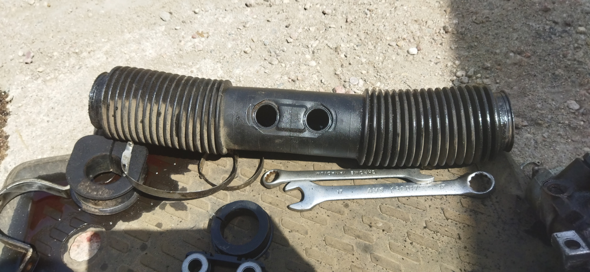 В том году еще летом решил перебрать рулевую рейку. Цель: замена сальников рейки, т.к. старые уже задубели и текла жижа гура в салон, точнее "потело" немного.