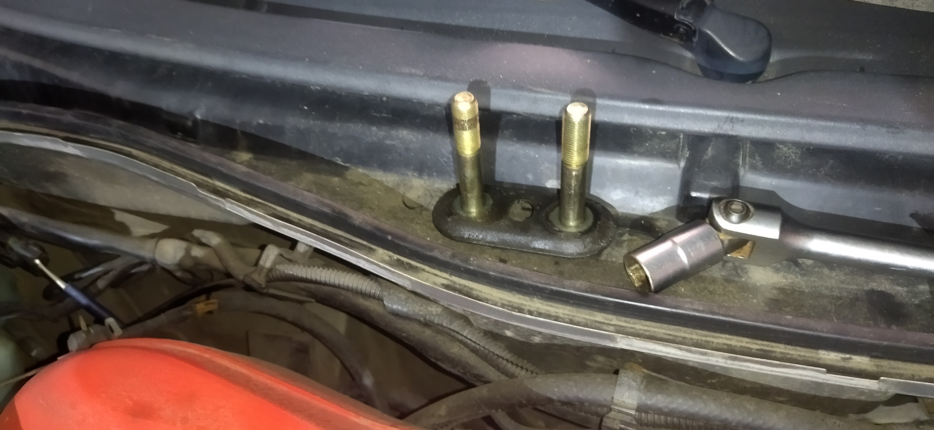 Откручиваем 4 гайки, крепящие рейки к моторному щиту