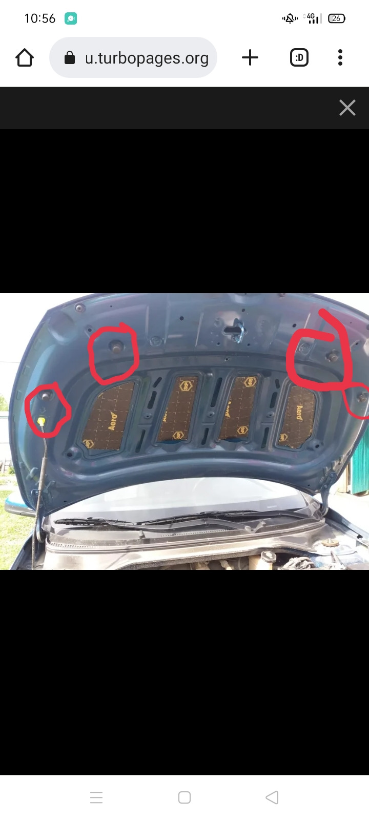 Добрый день! С момента покупки заметил разные зазоры между капотом и крыльями. Когда устанавливал газовые упоры, выровнял зазоры, правда пришлось помучаться. Из минусов, содранная краска на болтах петель и отсутствие краски под петлями, оголилось при сдвиге капота. Подмазал краской из тюбика.
