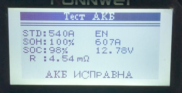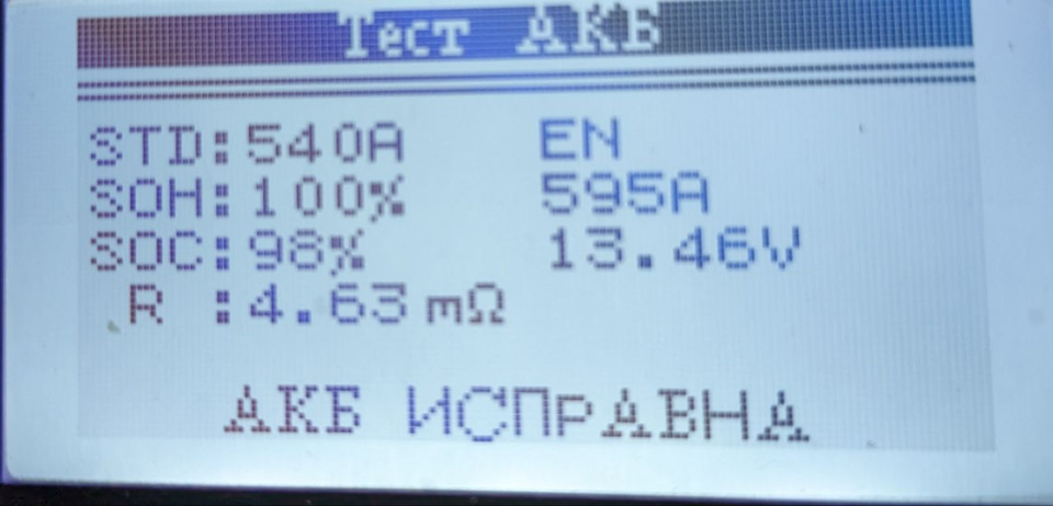 Разрядил лампочкой от фары до 12.4V. Потом заряжал по инструкции 3А 15.6V пока ток не стабилизировался на 0.25А. Потом оставил часов 12 зарядку 16.2V 1.5A пока ток не перестал снржаться, где-то 0.7A. Через пару часов отстоя аот что получилось.