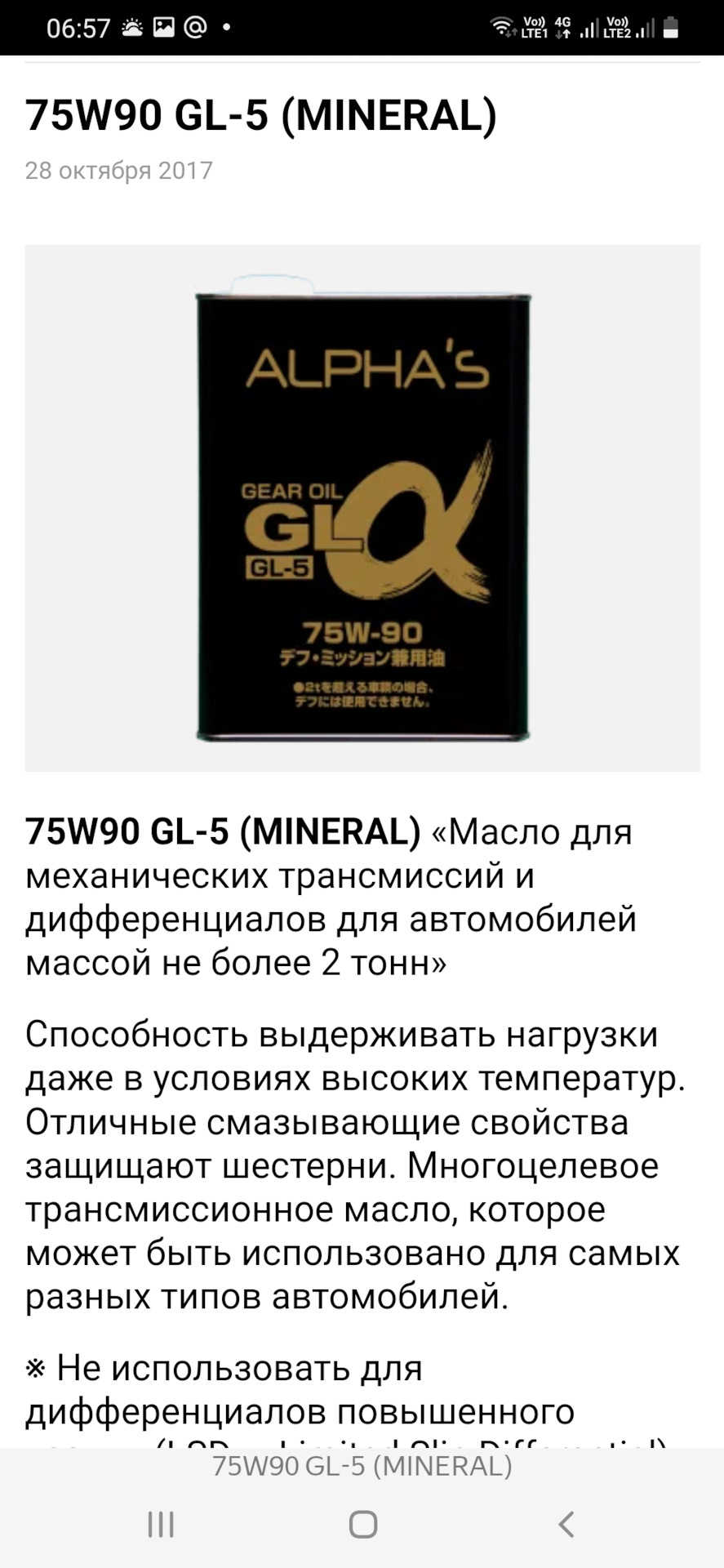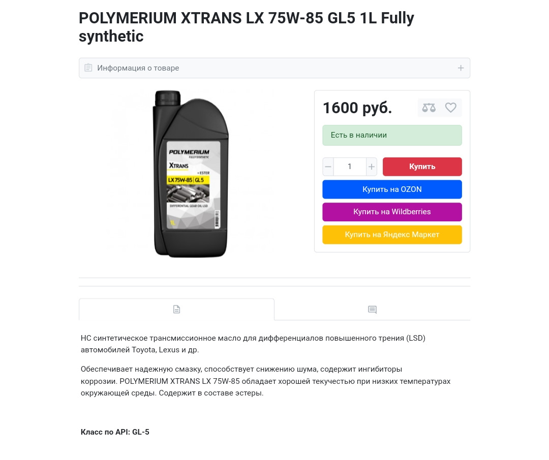 Ну то бишь масло POLYMERIUM XTRANS LX 75W-85 GL5 полное не соответствие того, что они указывают у себя на офф сайте?