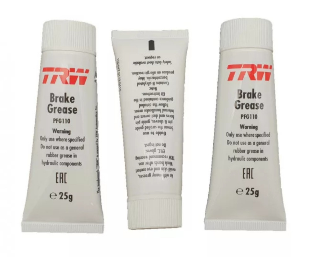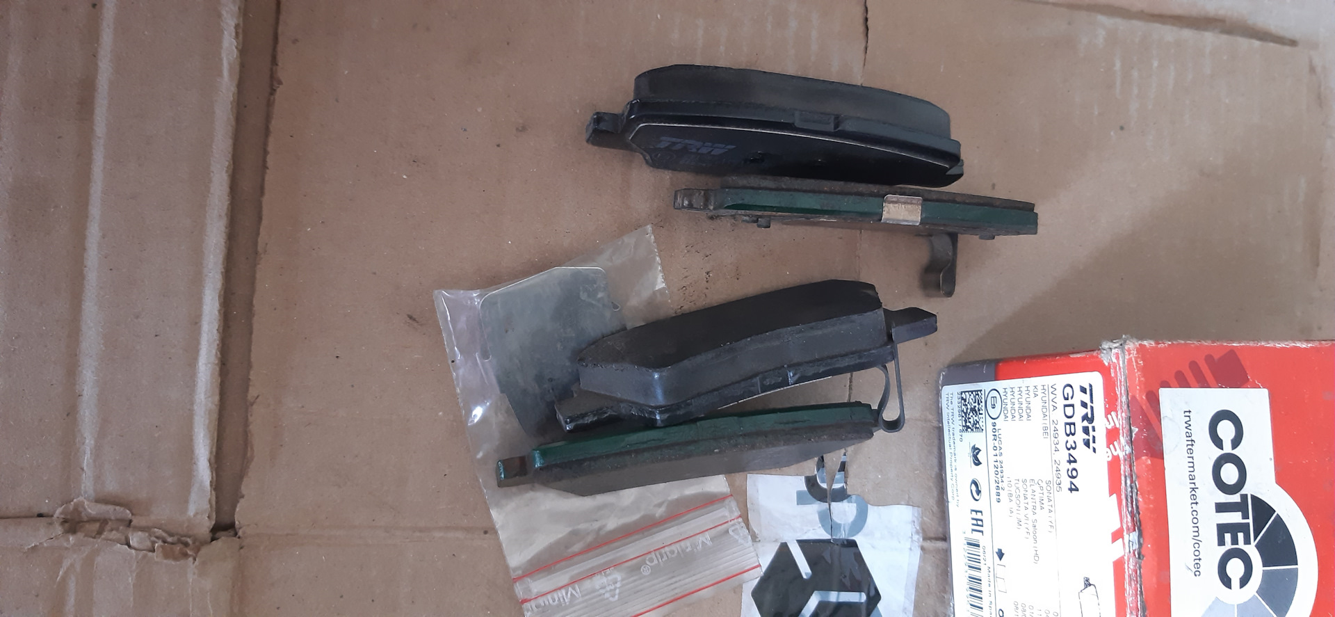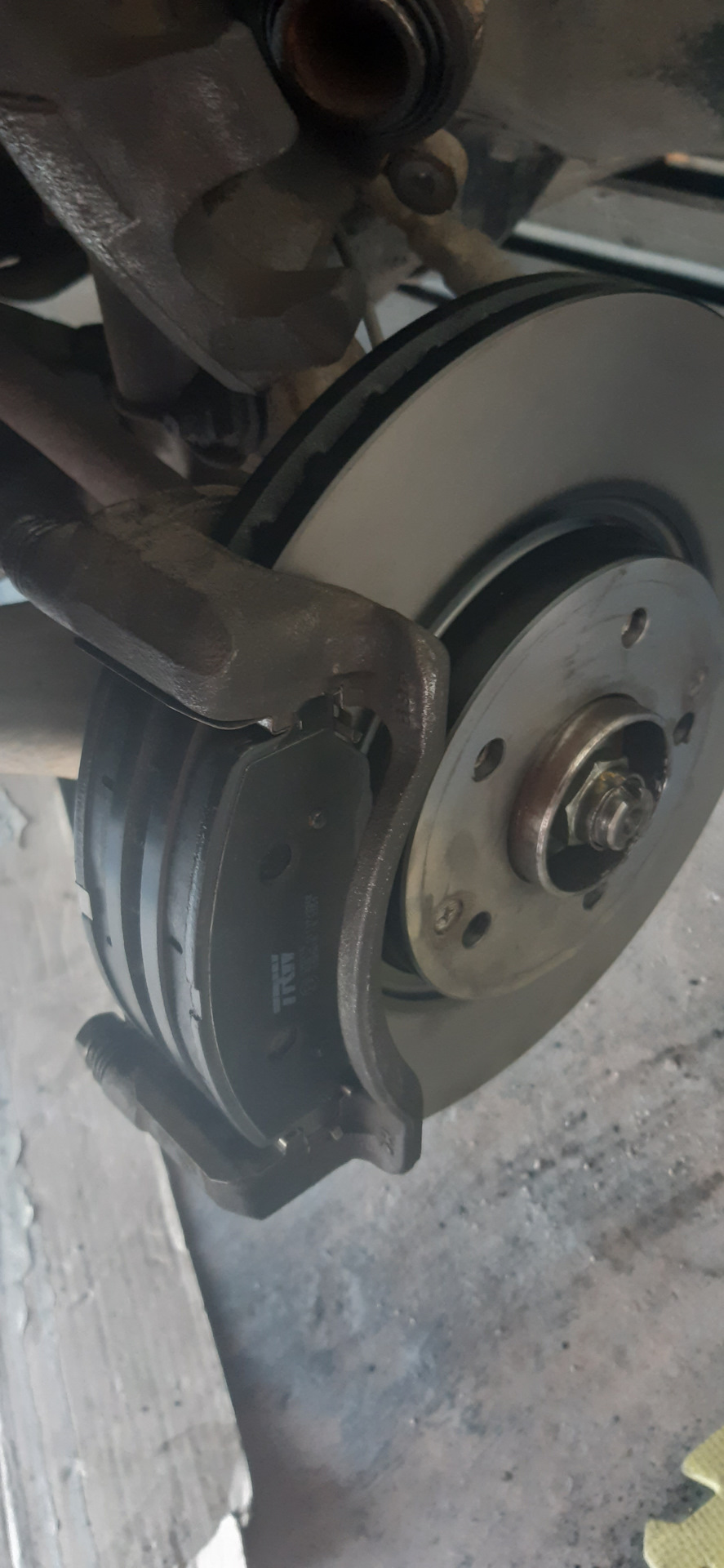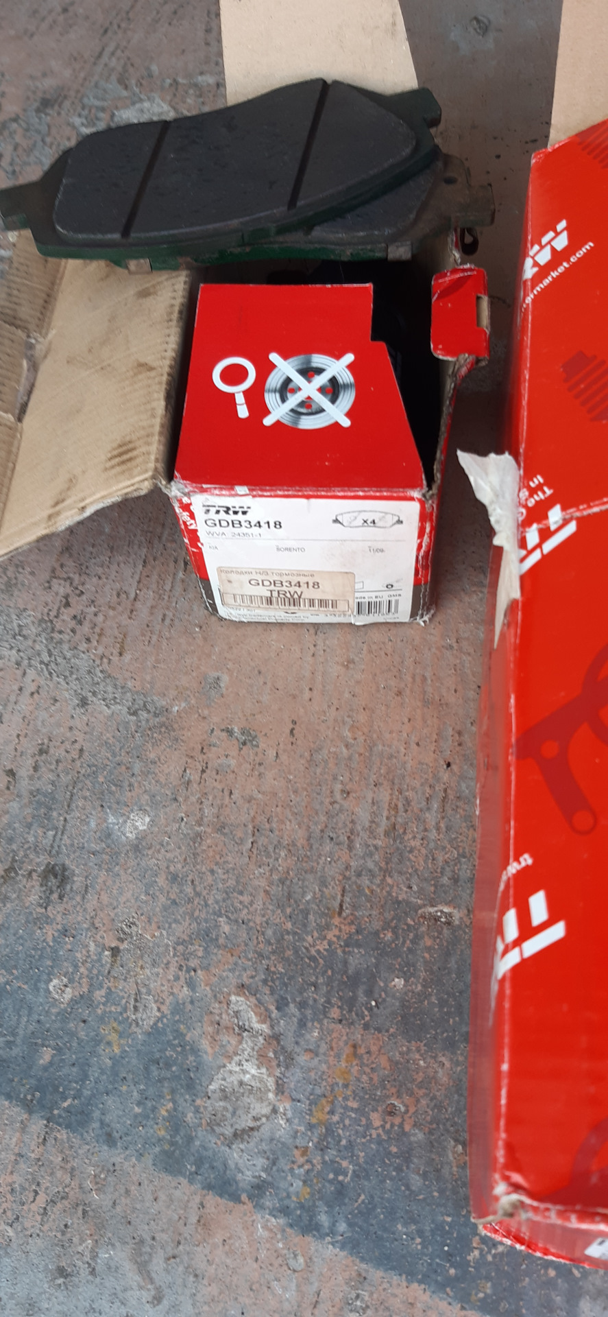 Заводские колодки. Остаток 4мм. Заменил на колодки trw GDB 3418. Все действия со смазками проделал как и для задних тормозов.