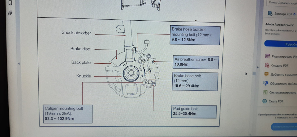 2. Передняя тормозная система. Замена заводских тормозных дисков. Остаток толщины 24мм. Установка новых дисков trw DF6804. Крепежные болты со старых дисков открутились легко. На новых дисках все отверстия под крепежные болтики совпадают.