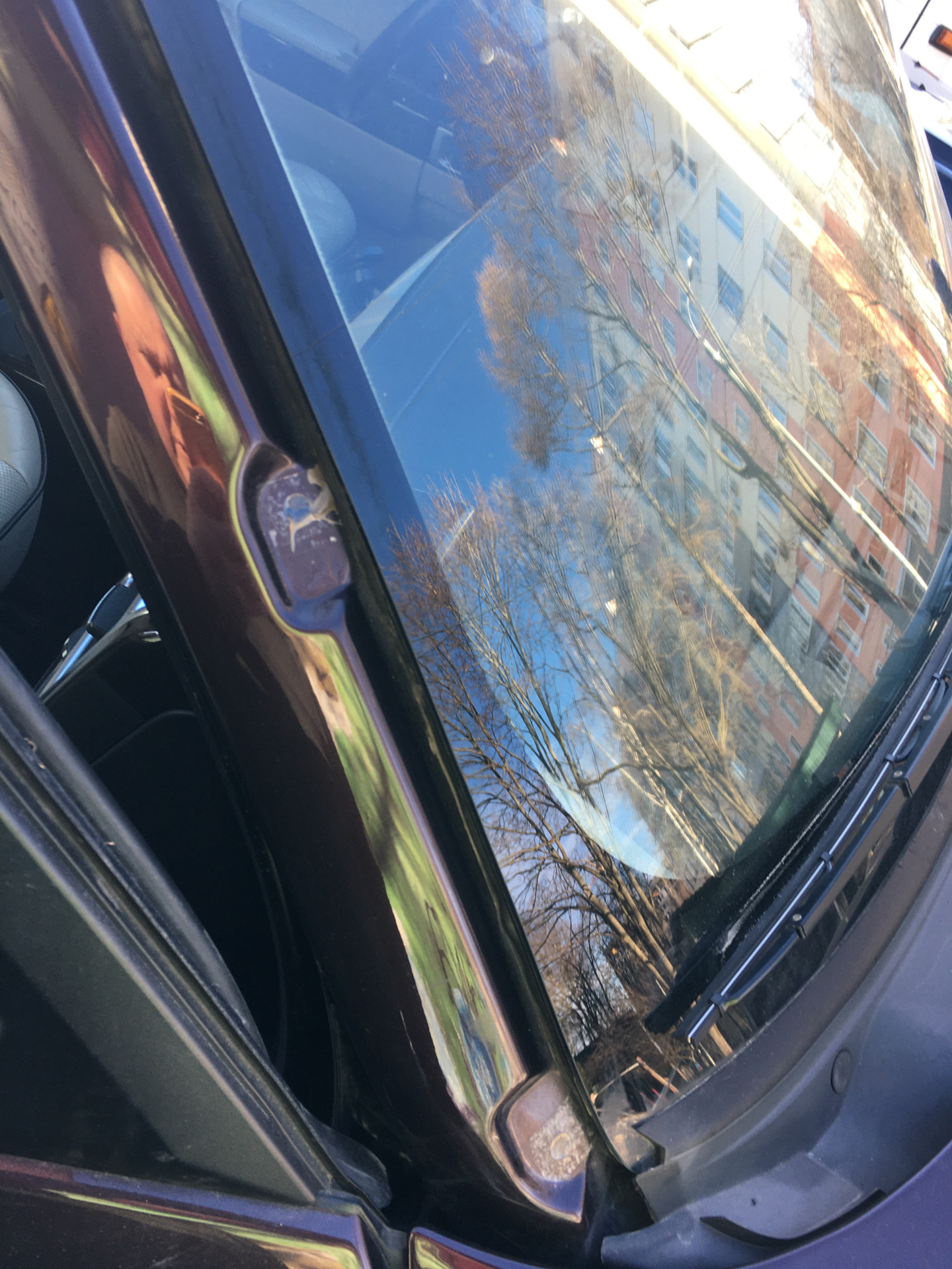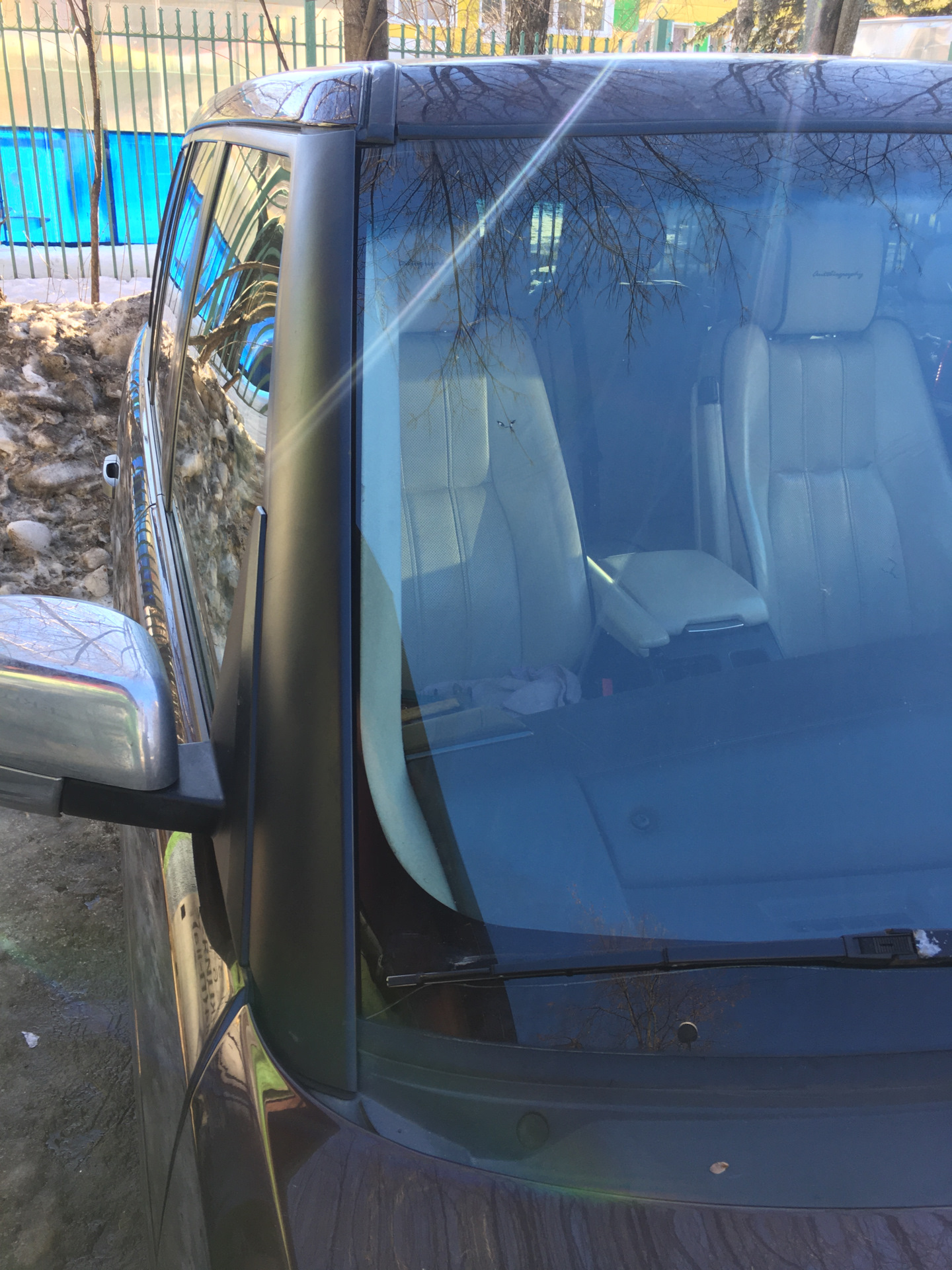 Установил молдинг на лобовое стекло с правой стороны. Ездил долгое время без него, с закрытыми отверстиями