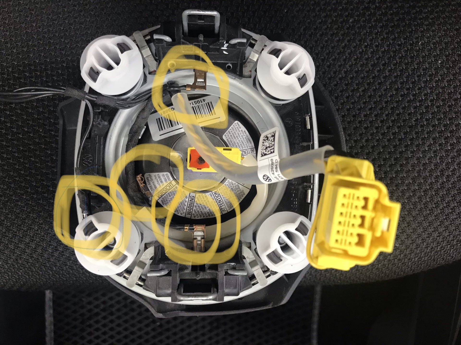Здравствуйте!Подклюючил кнопки мултируля Т5 каравелла 2013г, все работает, но при повороте ключа сигнал делает ПАП кратковременно, нигде неогу найти распиновку шлейфа подушки Т5, может вы можете помочь?