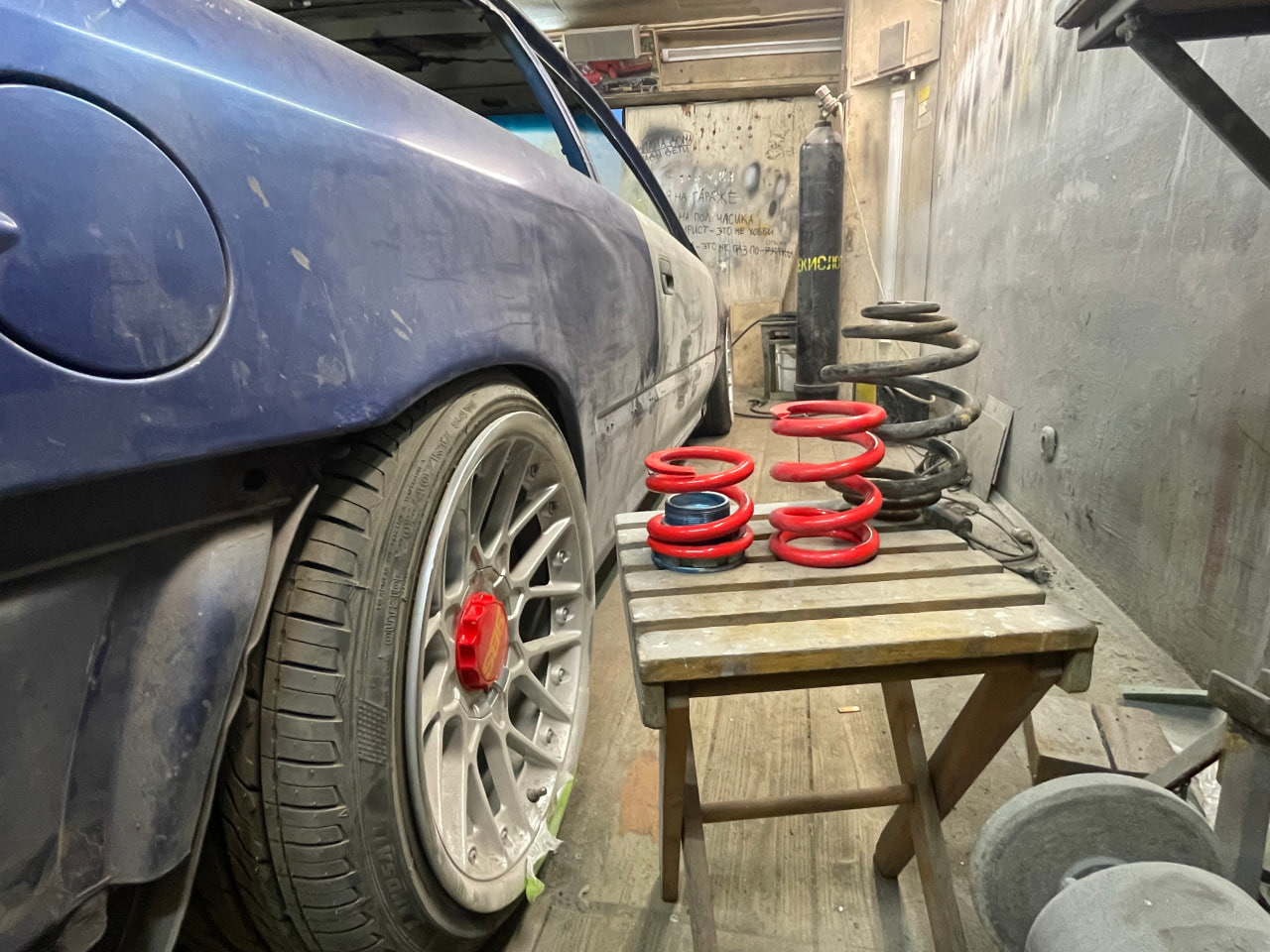 Когда начались первые примерки пружин и дисков на машине стало понятно, что этих параметров пружин явно недостаточно и машина получалась лютый джип и с этим нужно было что-то делать. В который раз убедился, что с калиброй всё не может пойти гладко! Постоянно возникают какие-то трудности и подводные камни, окееей.