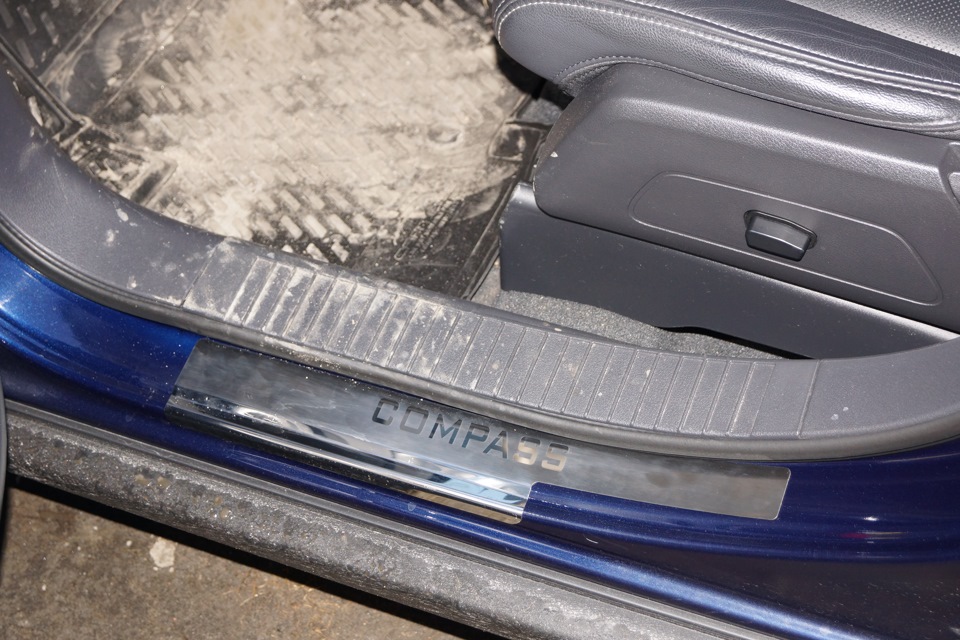 Да, попутно на Компас налепили: накладки на дверные ручки (с надписью JEEP — такой набор попался только раз!), накладные дефлекторы с хром-полосой и хромированные молдинги. Вот! Оценивайте, Компасоводы! Но помните, Красоту – её ничем не испортишь!
