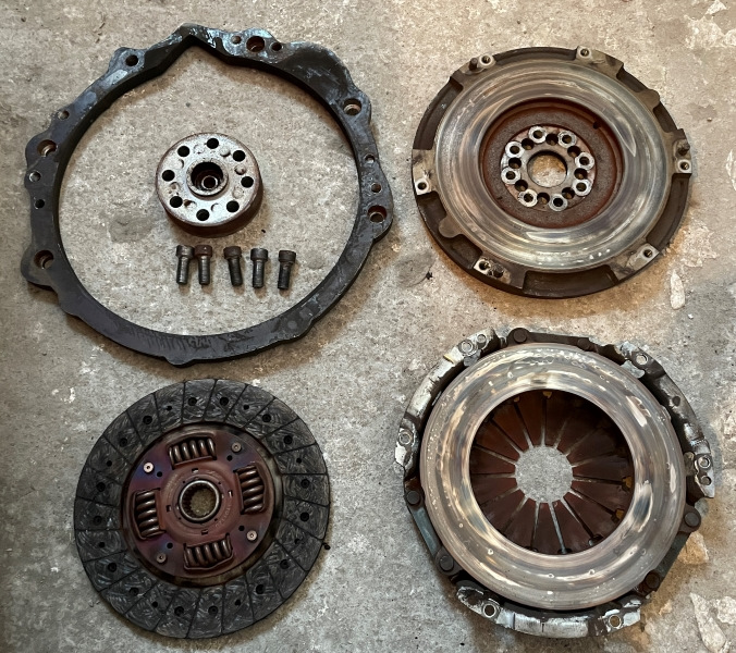 Комплект сцепления и переходная плита. Вопросов, почему оно буксовало, быть не должно. Вообще, часто я стакивался с буксующим сцеплением. Часто оно грелось. Это одна из причин, почему скорее хотелось сменить коробку и использовать нормальное сцепление.