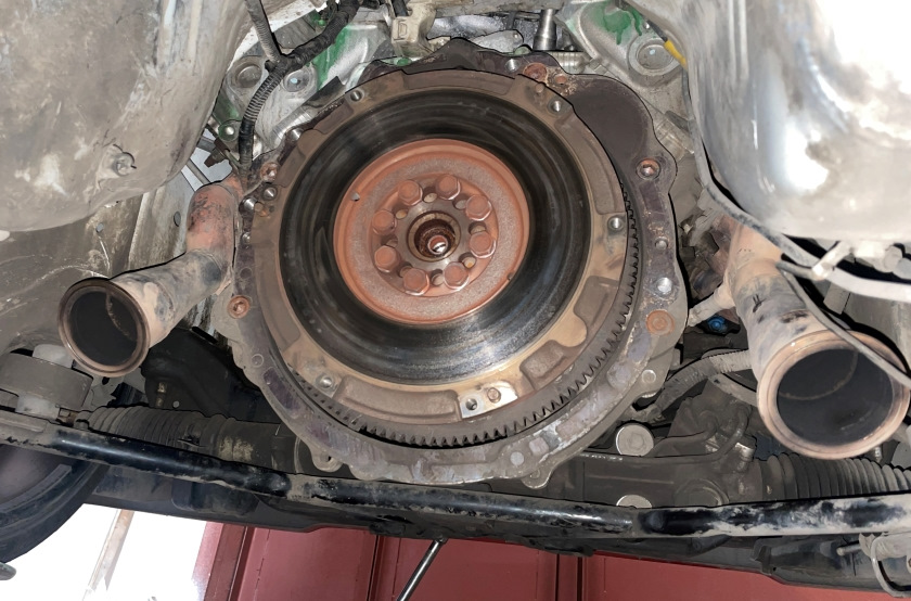 Маховик был от 3s-gte, пересверленный. Проставка 29мм и сохраненный на своем месте автоматный венец.