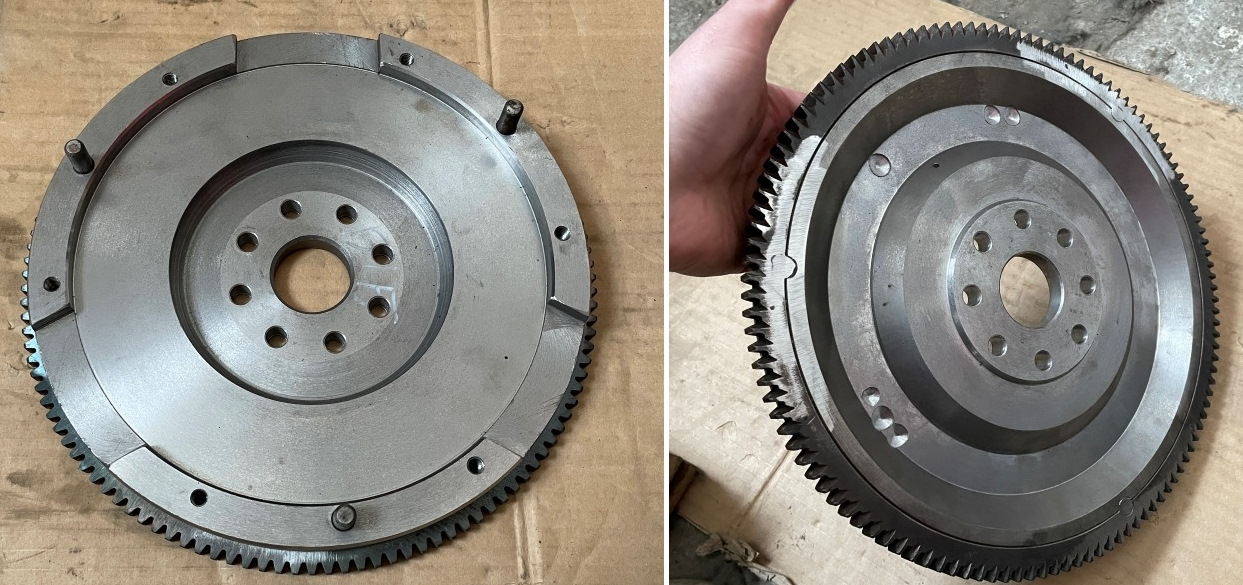 Пока переваривали колокол, я занимался сбором остальных запчастей. Изготовили маховик под BMW сцепление. У себя в городе переварил венец, запрессовал направляющие под корзину. После взял корзину с диском сцепления и в собранном виде отбалансировал маховик. Болты под корзину подошли те же, что держали корзину на маховике от 3s-gte.