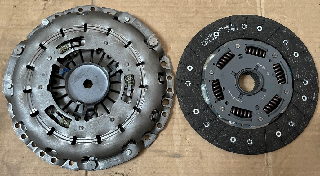 Комплект BMW сцепления LUC. Я даже не знал, что они продаются комплектом — диск, корзина, вилка и выжимной. Что касается установки выжимного — устанавливать его большей стороной в вилку, той, что 33.5мм. Подшипник мне прислали ребята вместе с маховиком.