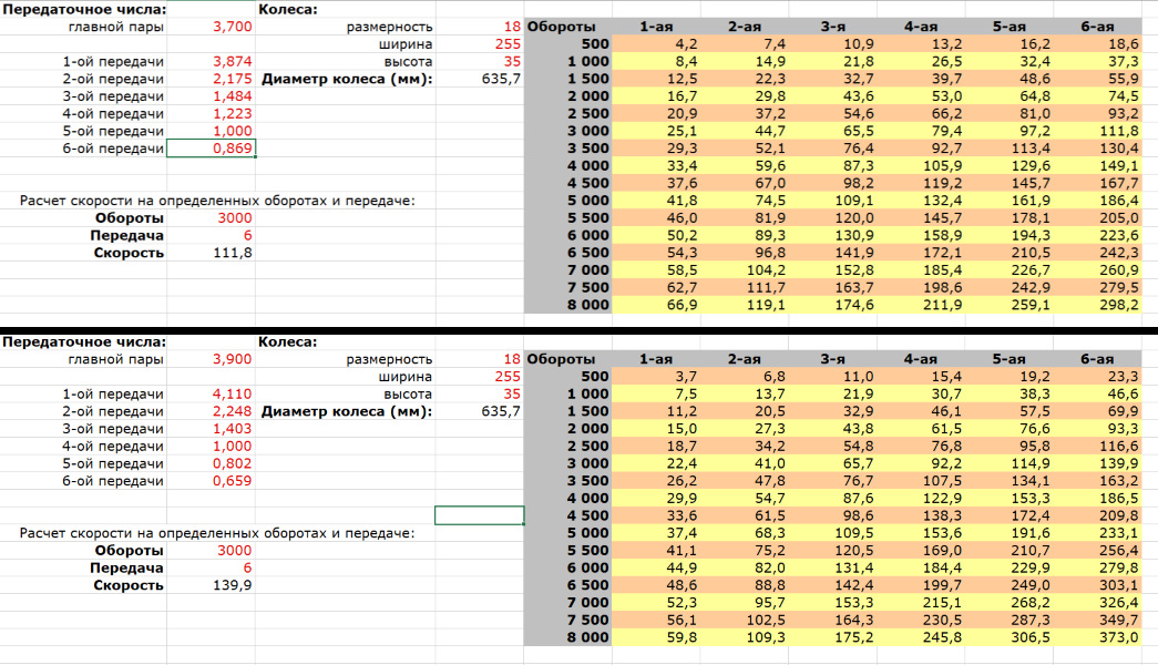 Расчет по передаточным числам. Выше таблица j160 коробки с ГП 3.7. Ниже gs6-45dz с ГП 3.9. Не смотря на то, что я поставил пару 3.9 вместо 3.7, цифры выглядят более менее приемлемо. Пятая и шестая передачи комфортные для трассы, хоть теперь я очень редко езжу на Альтеззе на дальние расстояния. А первые три передачи очень веселые для городской езды.