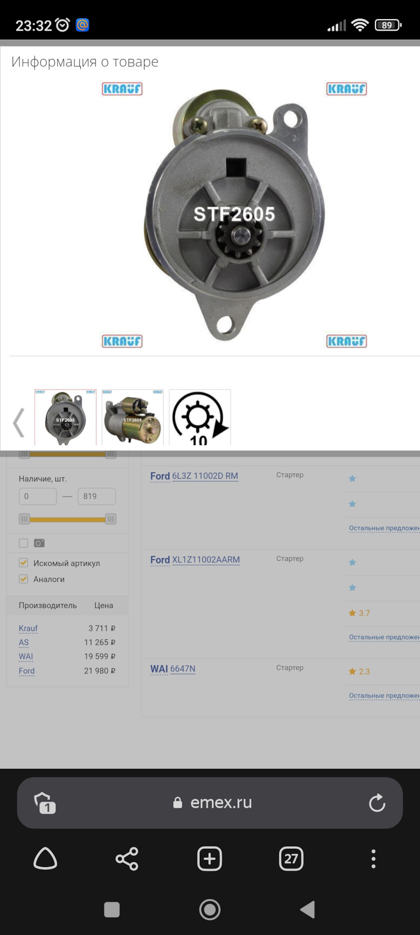 Я тоже пару дней назад стартер поменял, разобрал, а он внутри как новый, поменял только втягивающее. Второй стартер хотел перебрать, но обнаружил, что новый стартер стоит 3600р и отказался от затеи с переборкой)
