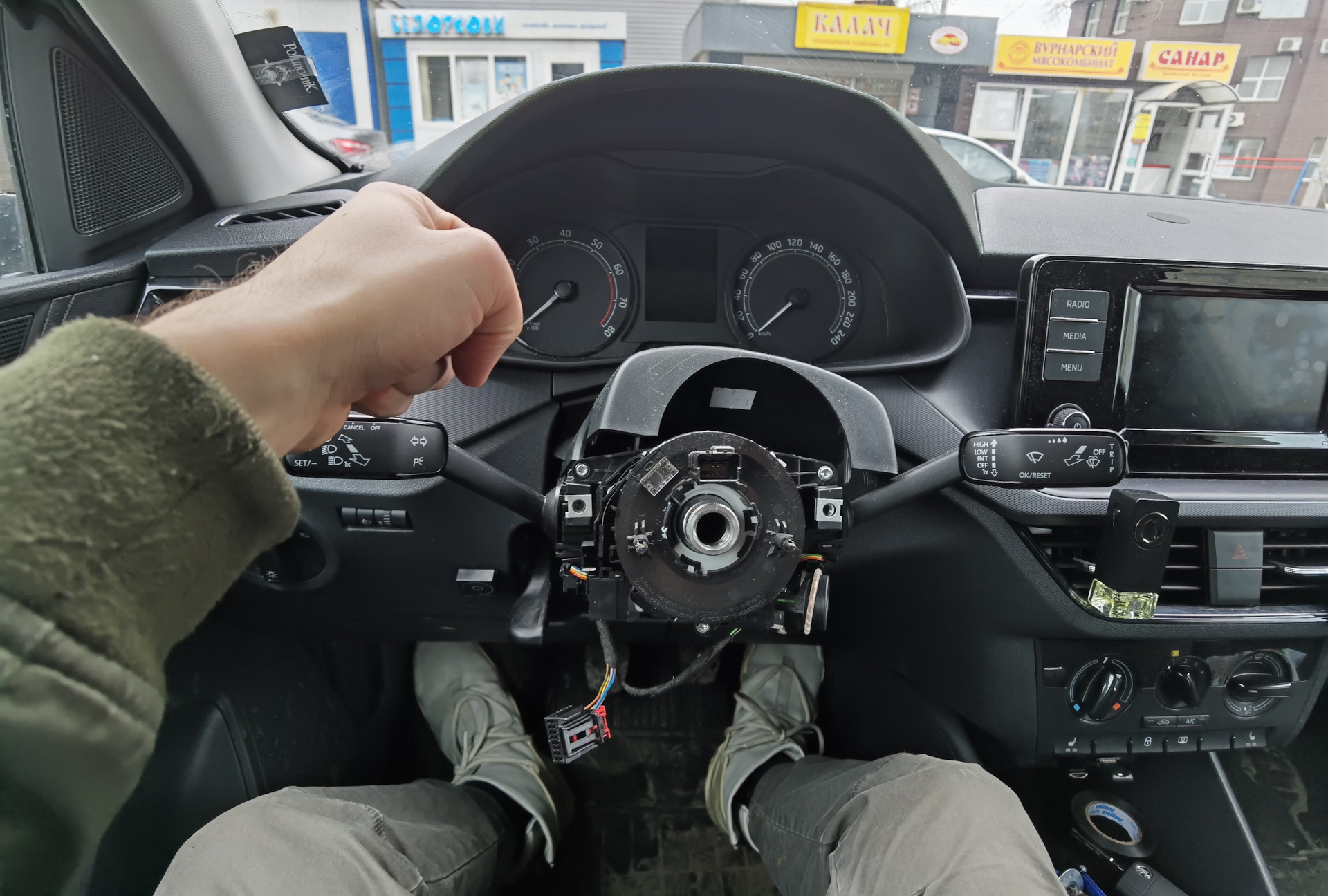 Руль к покупке был на весну — лето, но подвернулся так называемый максимальный руль за 10к почти новый, с родной вставкой. С какими то модными КэЛэЭрами, обогревом и подрулевыми переключателями.
