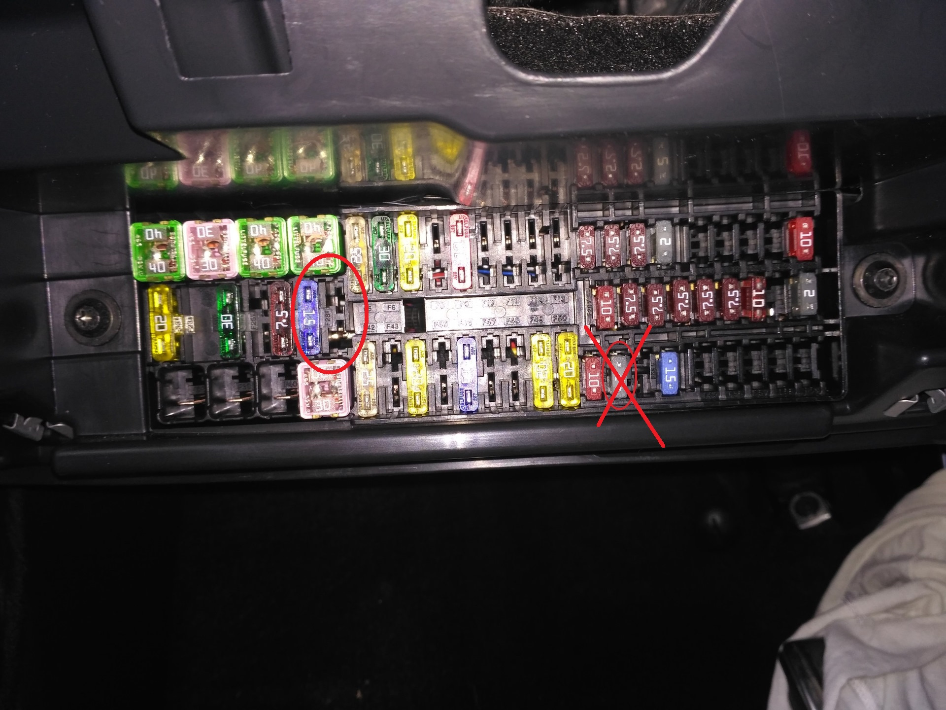 А вот пил который идет в блок предохранителей с ним наоборот пришлось повозиться, был широкий (под большой предохранитель) Артур по телефону проконсультировал он мне сказал "прозвони тестером где + на зажигании и туда вставляй". Вставил я его в среднюю полоску предохранителей слева, на 10 А, пришлось раздвигать весь пучок проводов, было не удобно но удалось.