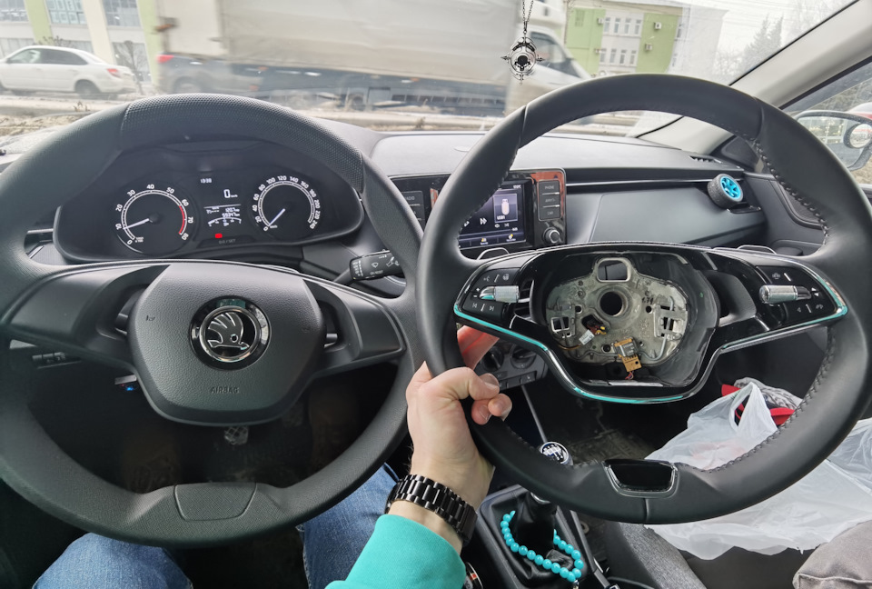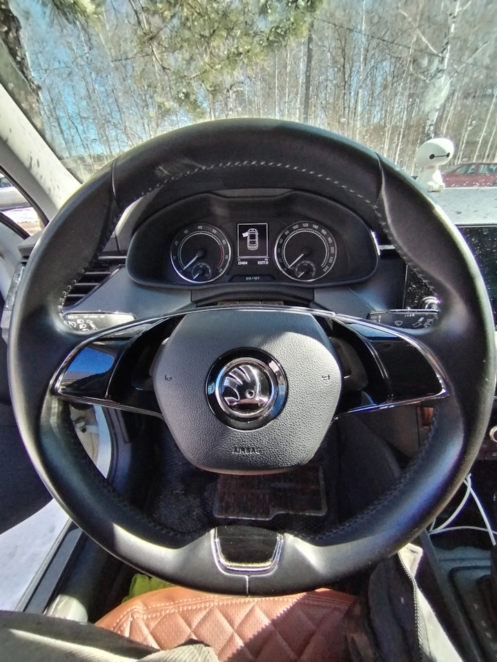 Всем йоу. Руль был в списке хотелок, при покупке авто в салоне посидел в новой окташе руль очень понравился. Именно 2х-спицевый классический, со скосом 3-х спицевый, с перфорацией в Рапид считаю перебор) Тем более был уже такой руль…