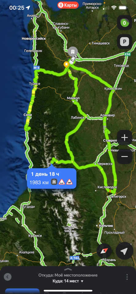 С разным стилем езды серпантин, ровная трасса, пересеченая местность с неглубоким бродом, опять трасса и крайние 420км 130-140км/ч