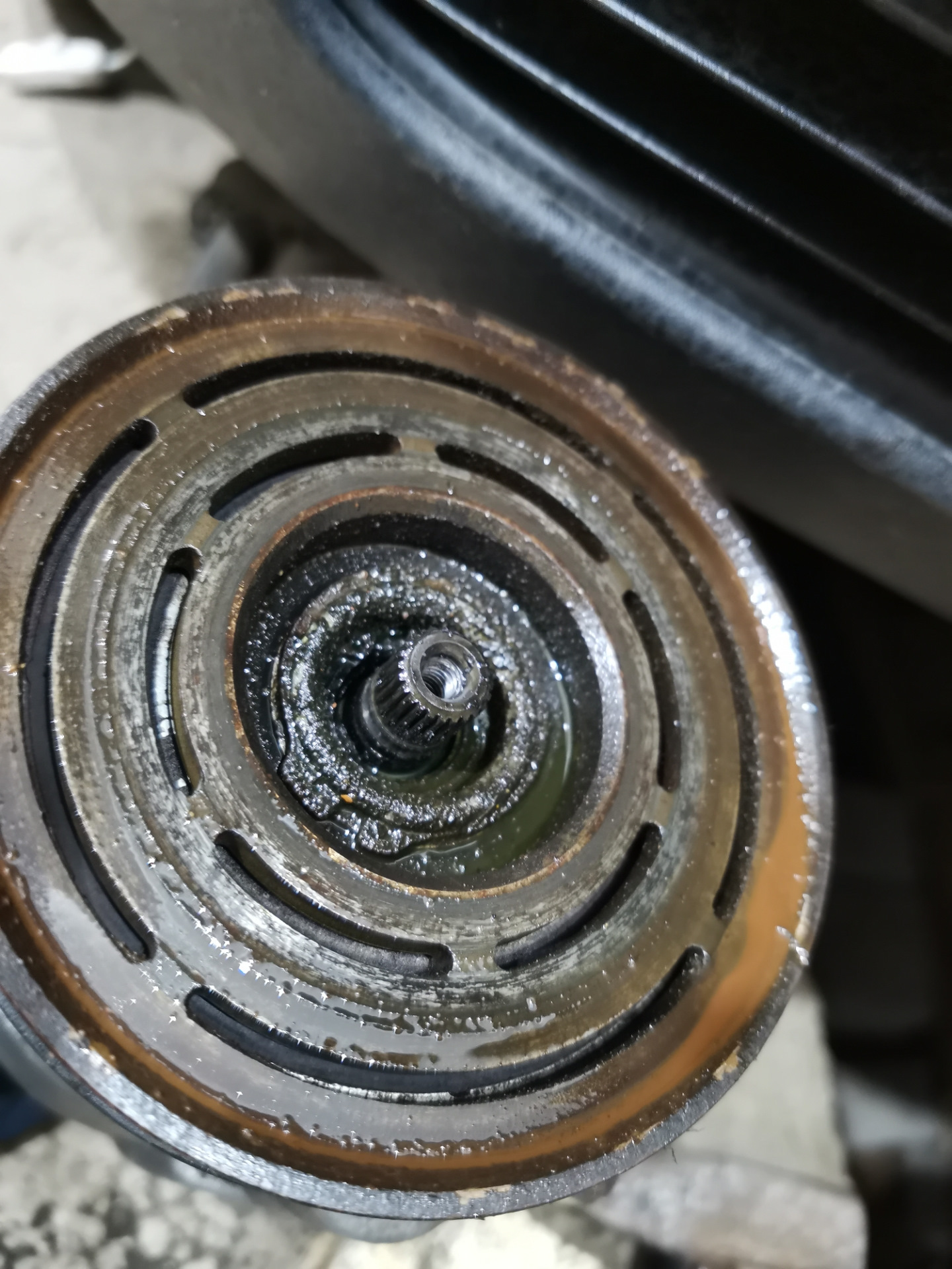 Загоняем авто в гараж и начинаем танцы с бубнами. Пытался снять верхний фланец не снимая компрессор, но он ни в какую не хотел выходить из шлицов. По итогу пришлось снимать компрессор. Работы 2 минуты открутить 4 болта (13 головка) и отключить фишку. Вытаскиваем компрессор, ложим рядом и так уже проще.