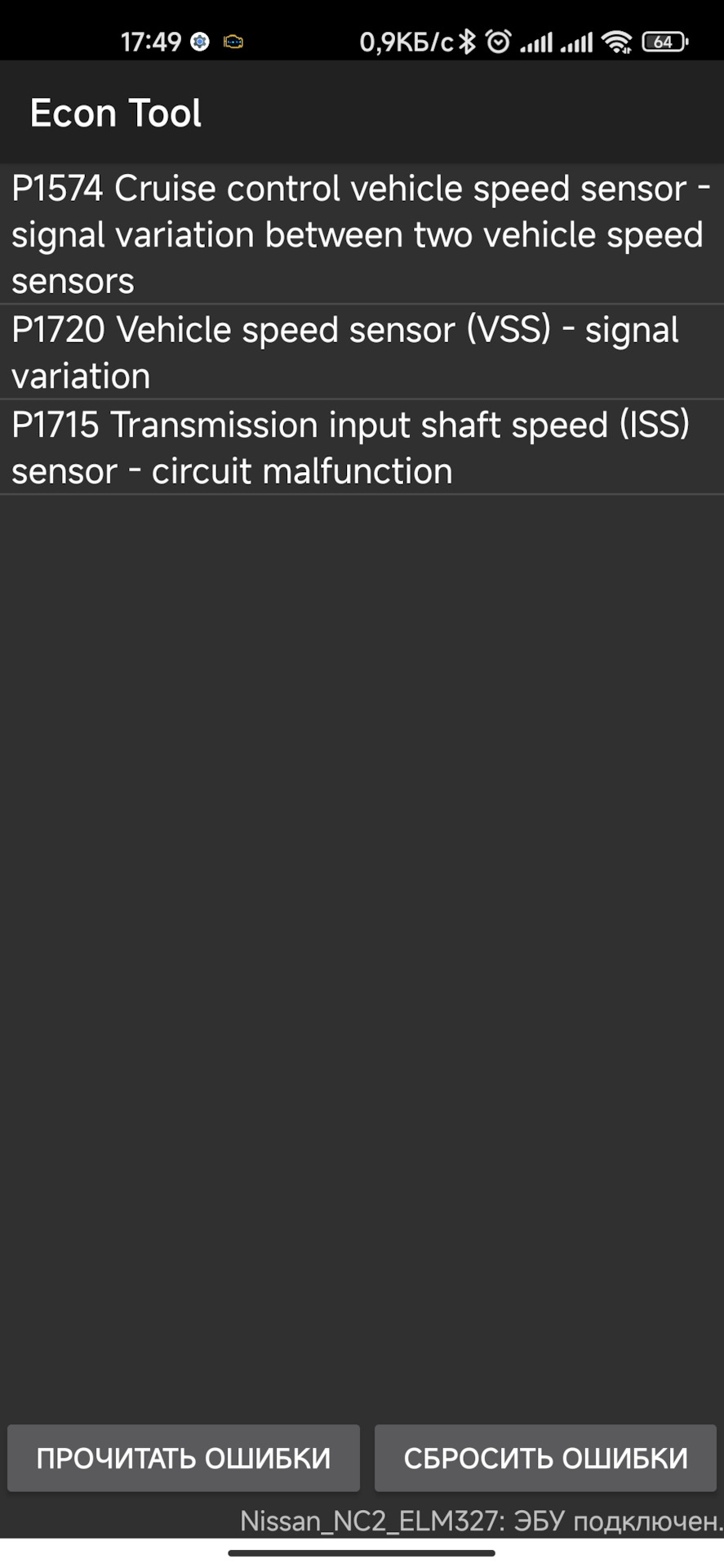 Ошибки P1574, P1715, P1720, U1000 на Primera p12 2,0 CVT ESP