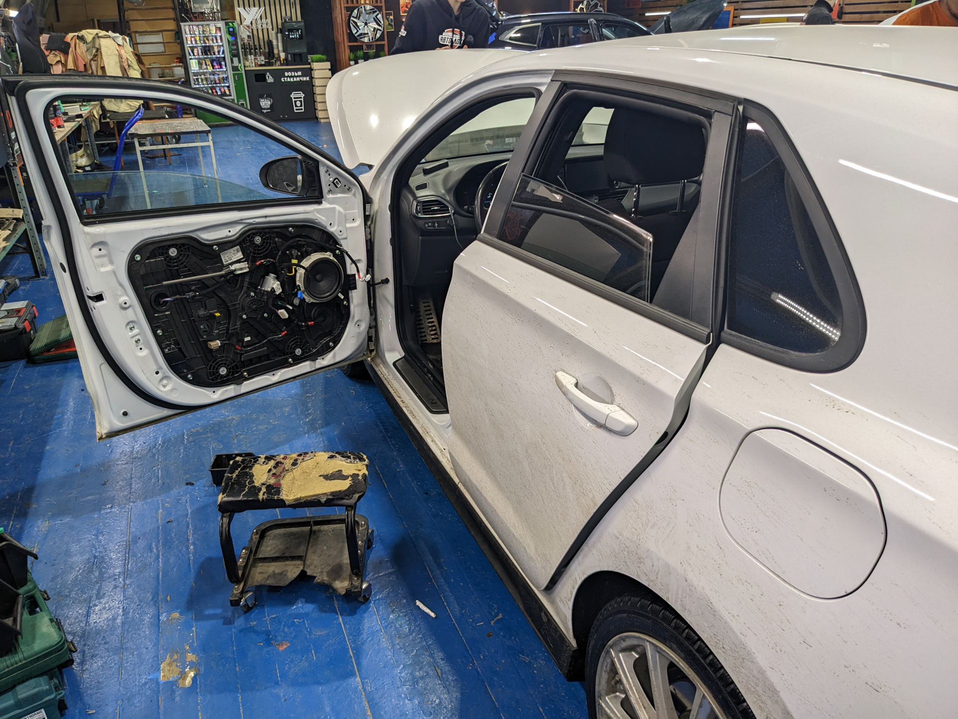 Думал на счет дверей, арок, капота, багажника (без снятия салона и потолка), но ребята из сервиса этого сказали, что не имеет смысла без без пола и потолка. Так что остановились только на дверях. По ощущениям музыку стало лучше слышно, стало меньше звуков от других машин в потоке. В целом доволен.