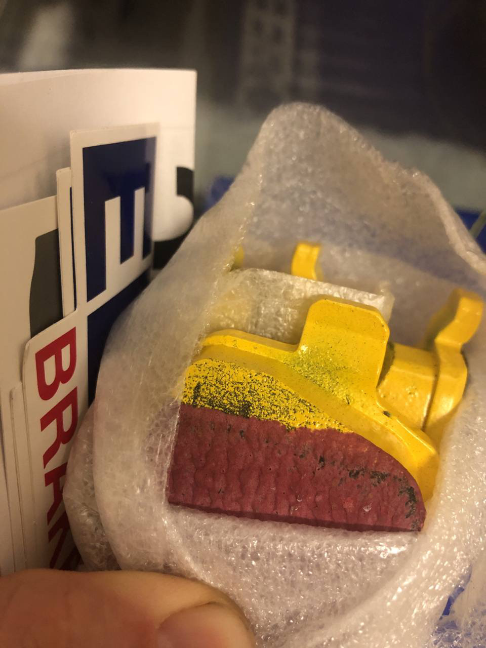 Так как этот комплект был создан одной компанией, а не сборная солянка и подбор колодок к дискам, на колодках присутствовал специальный состав для лучшей притирки с дисками.