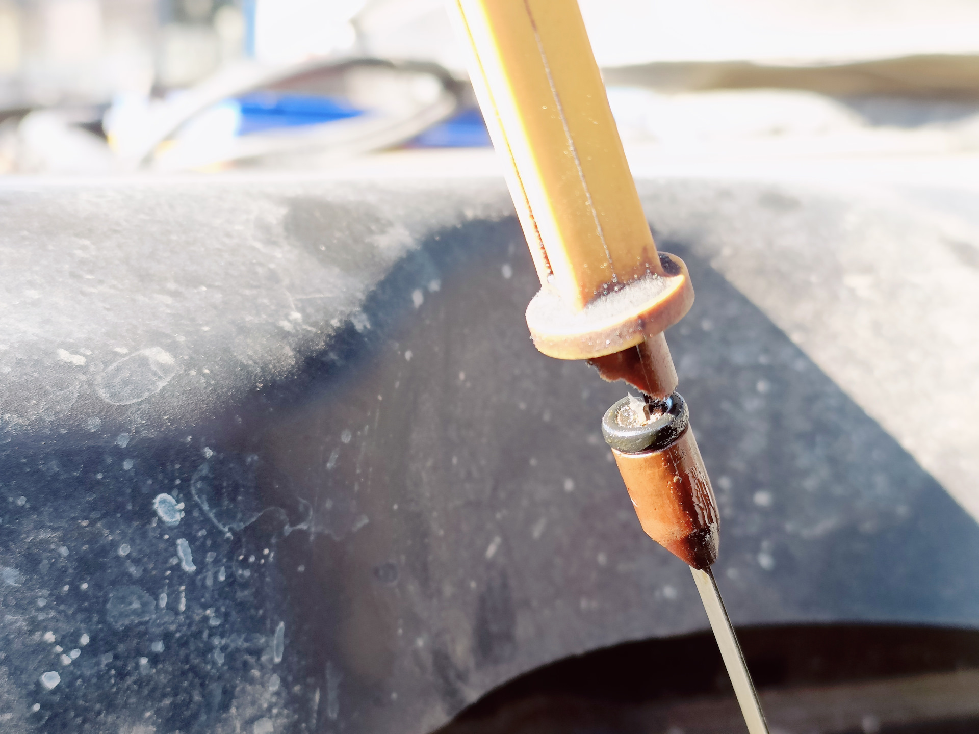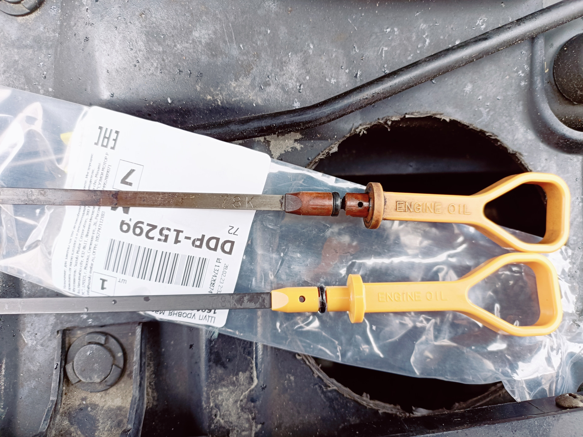 Заодно пришлось заменить щуп уровня масла 1691078K01 на новый — старый повредился в верхней части и пластик раскрошился.
