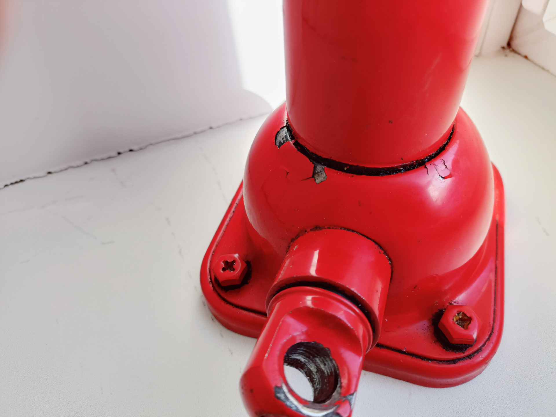 Подбил молотком опорную чашку и выровнял ее относительно цилиндра штока. После этого механизм подъема пришел в норму, соосность восстановлена и вращение осуществляется легко. Также обнаружил трещину и разрыв сварного шва на стыке чашки и цилиндра — этот узел не надёжен, использовать домкрат в таком состоянии достаточно опасно. Были мысли усилить этот стык путем сварки с использованием обсадного кольца, но решил не испытывать судьбу и купить более удобный надёжный в обращении гидравлический домкрат. Посмотрел записи на Драйв2, ассортимент интернет-магазинов и выбрал AirLine AJ-TB-04.