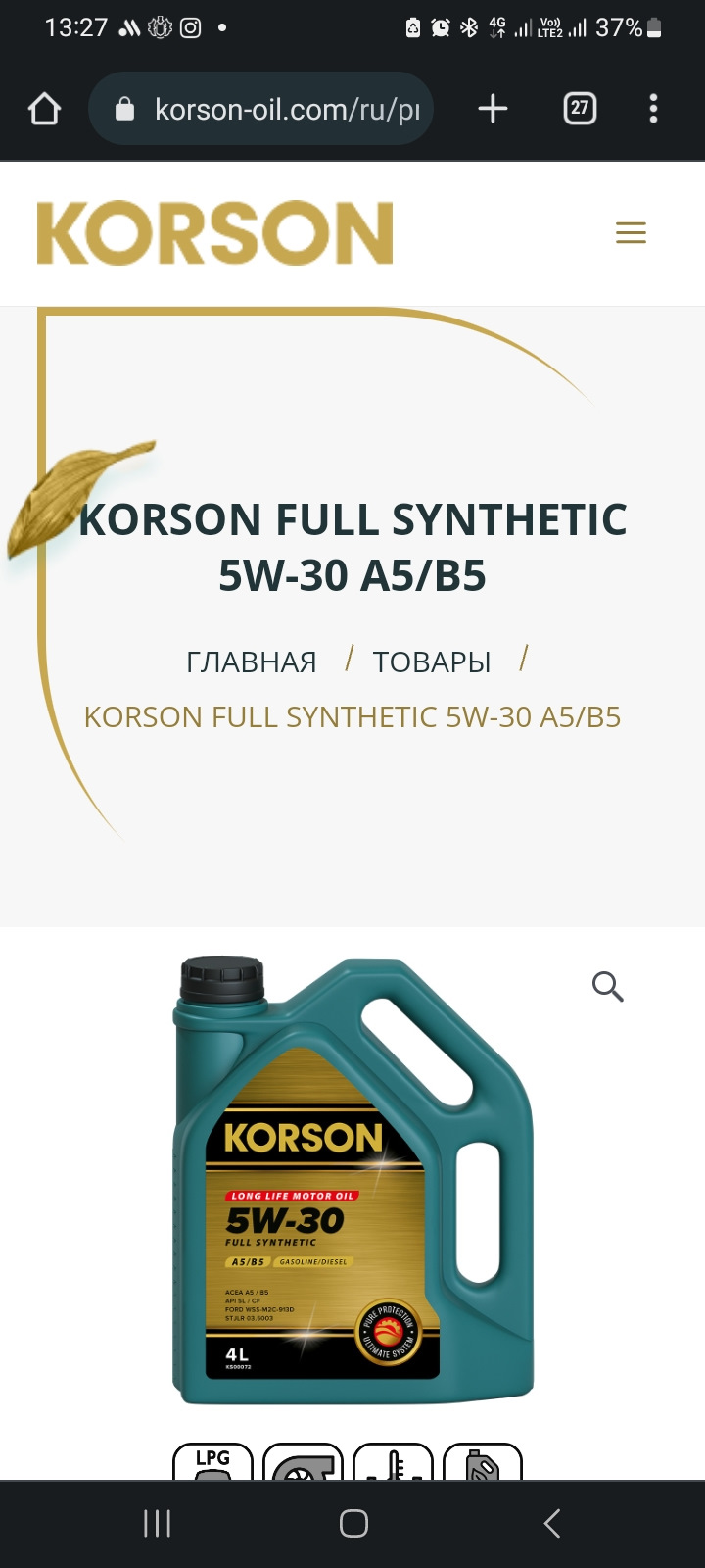 Заказывал по артикулу KS00072 — Моторное масло KORSON FULL SYNTHETIC 5W-30 A5/B5