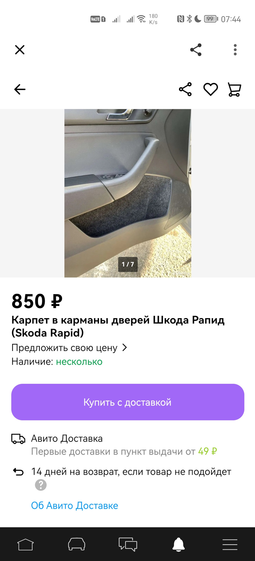 Заказал на авито за 850р + 0р бонусами за доставку. На 4 двери, чёрный карпет фирмы Шумофф, в комплекте была подробная инструкция. На дальние стенки не было кусков (показываю пальцем) и я пока не понял нужны ли они вообще, может вырежу сделаю сам. Но если их решили не делать может и не буду заморачиваться…