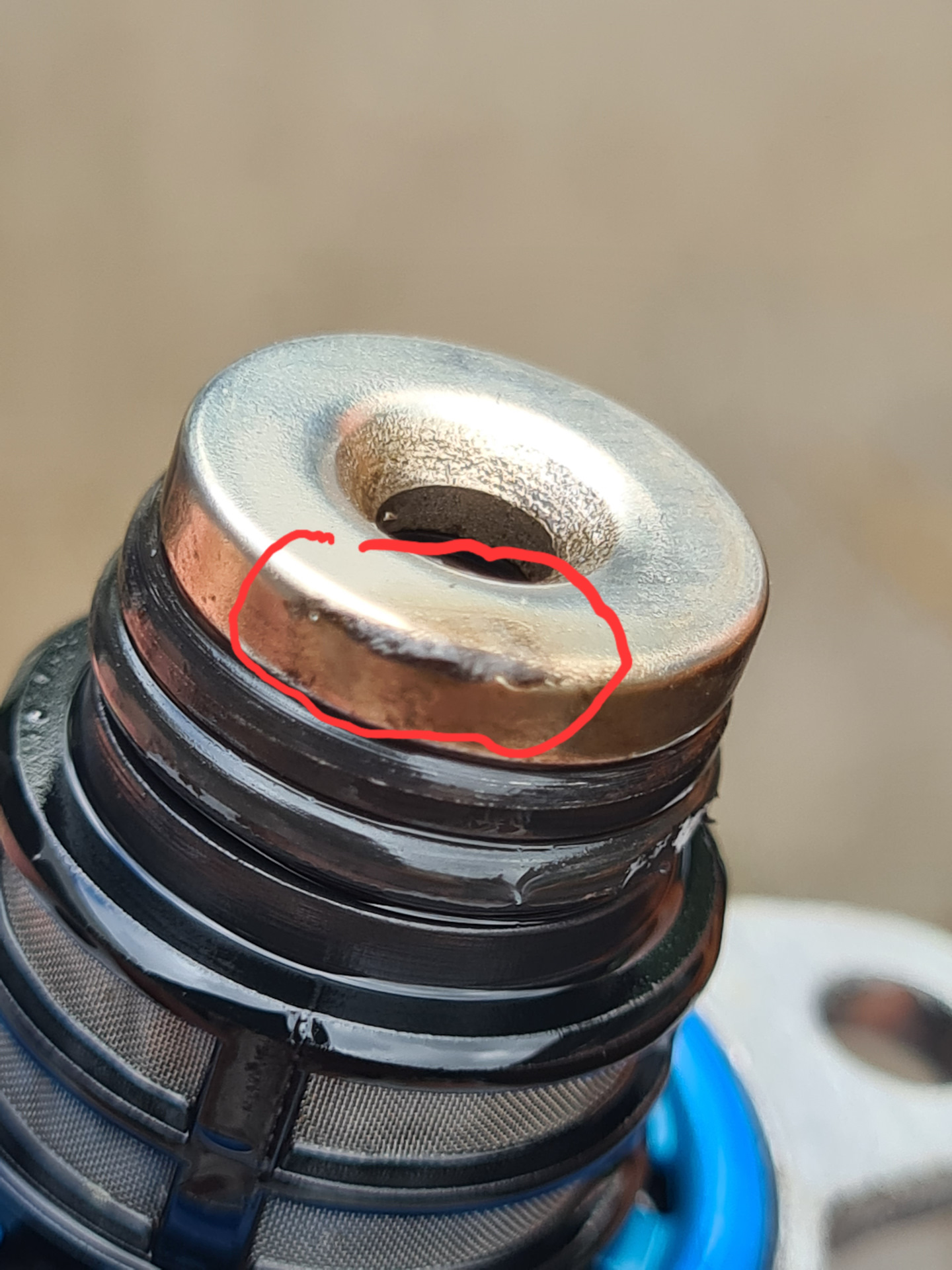 После установи ТНВД новой ревизии от кузова b9 (VAG 04L130755E писал об этом в первой части) машина проехала больше 30 000 км. Решил снять рейл и толкатель насоса для проверки износа и посмотреть наличие стружки. На стенках толкателя пропало зеркало, появились следы износа и мелкие борозды, на ролике толкателя так же присутствую следы износа, соответственно мелкие фракции металла (стружку) мы должны где то обнаружить…заглядываем в рейл и видим на стенках мелкую стружку, она похожа на пудру и возникает в процессе трения деталей ТНВД!