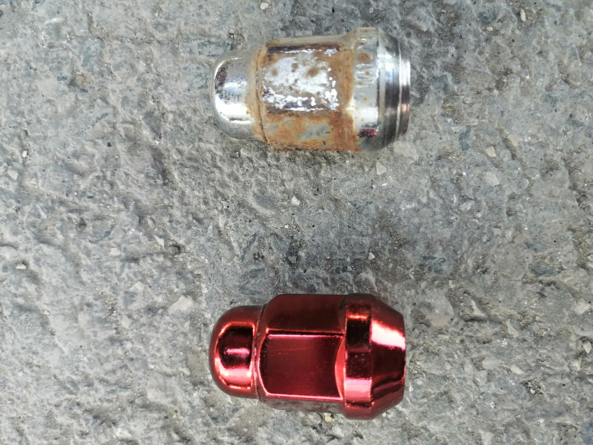 Приветствую всех! Замена колесных гаик, как кажется на первый взгляд в принципе вещь не такая уж и необходимая, но время берет свое и за время эксплуатации они стали выглядить мягко говоря не очень. Появилась ржавчина и хром облез. Полазил, поискал на Озоне, ЯндексМаркете и т. д. Остановился на ЯндексМаркете. Выбрал красного цвета. Но сильных надежд питать не надо) это просто краска и думаю через пару сезонов смотреться), но под ней вроде как хром, так что надеюсь будут блестеть. Берегите себя и дай вам бог!