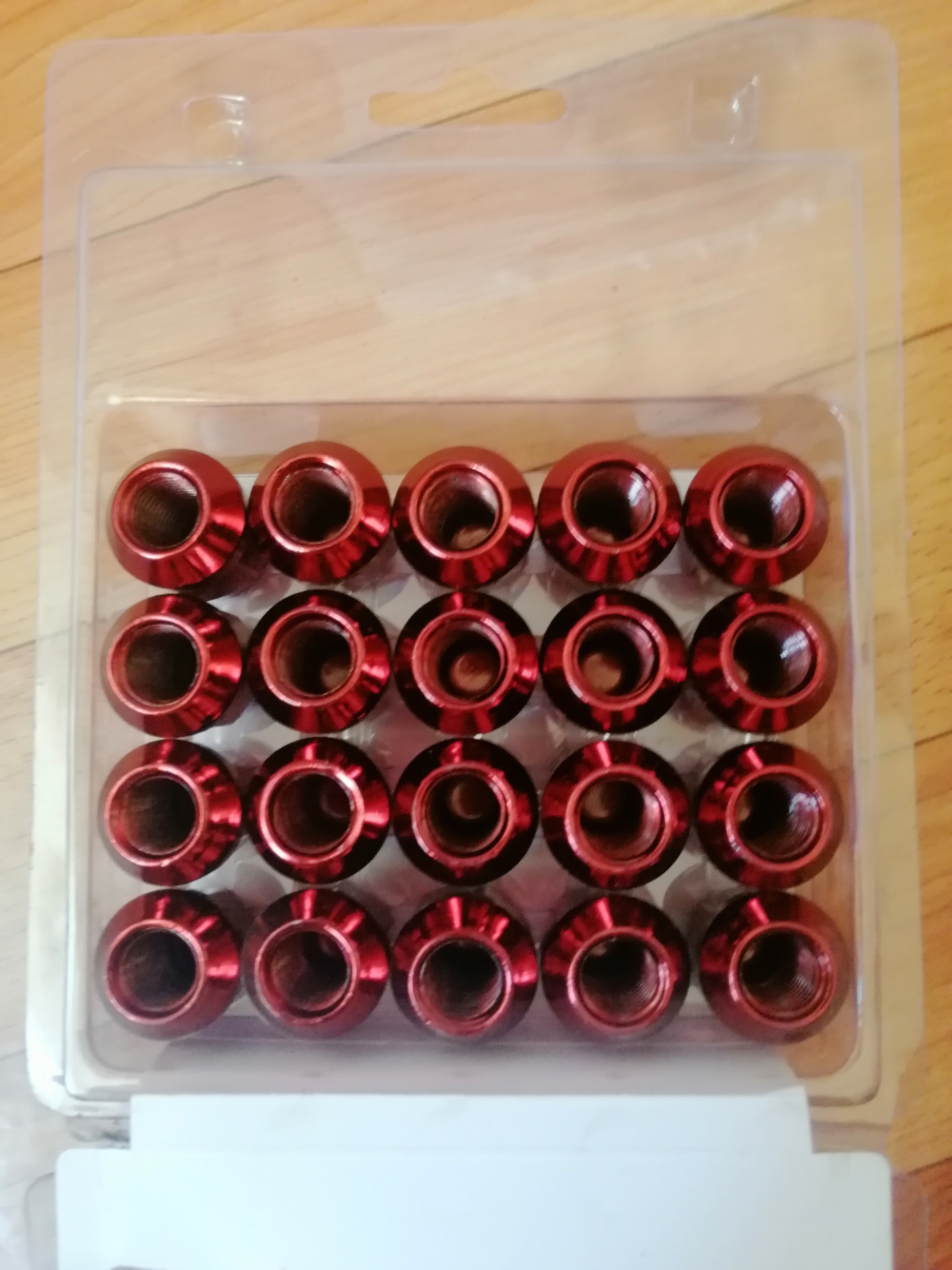 Брал себе гайки STARLEX — чёрные, глянцевые. Отъездил на них прошлый летний сезон и в этом году установил. протёр от пыли — как новые. Если красные облезут — советую присмотреться к таким же)