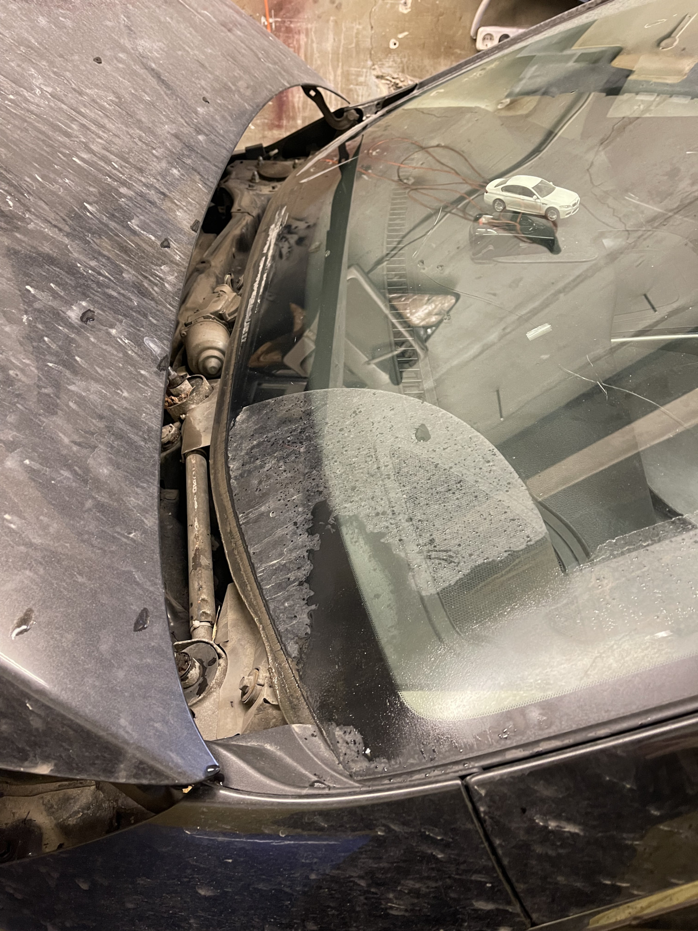 Старый герметик весь сняли.
