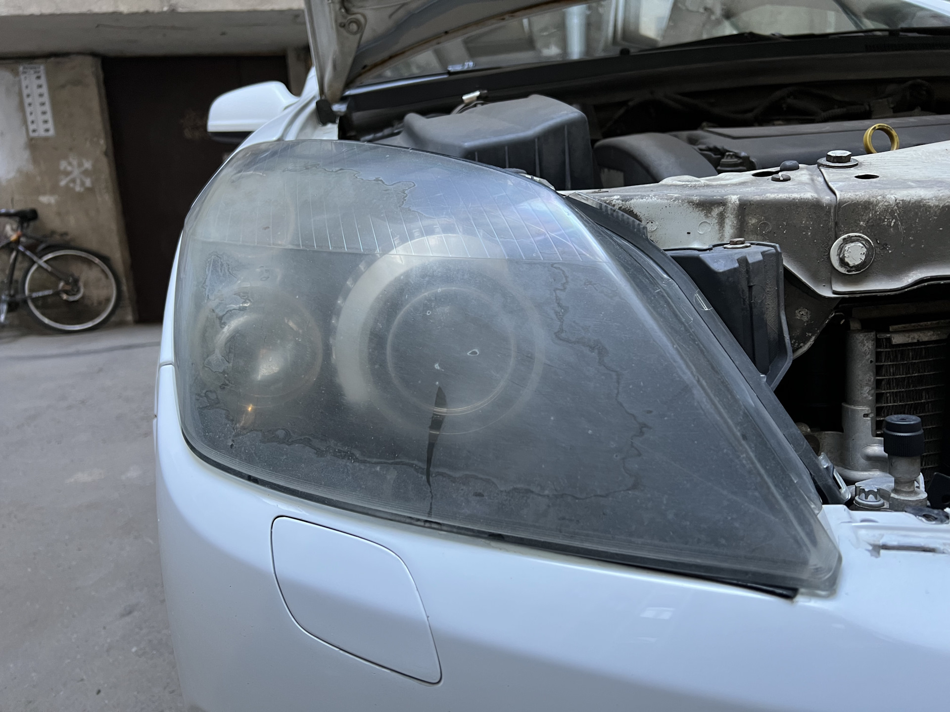 По хорошему конечно нужно было снять старый лак весь до 0, а потом лачить, и лучше это делать на снятых фарах. Ну и в любом случае я бы советовал их в пленку тянуть даже после лака нового.