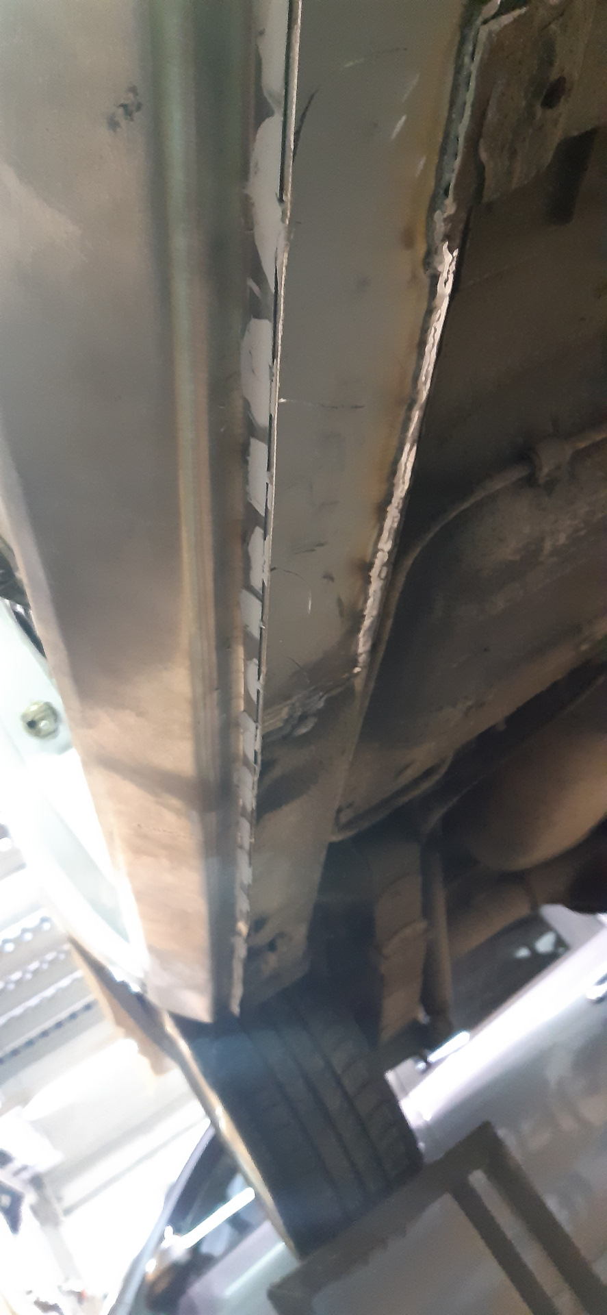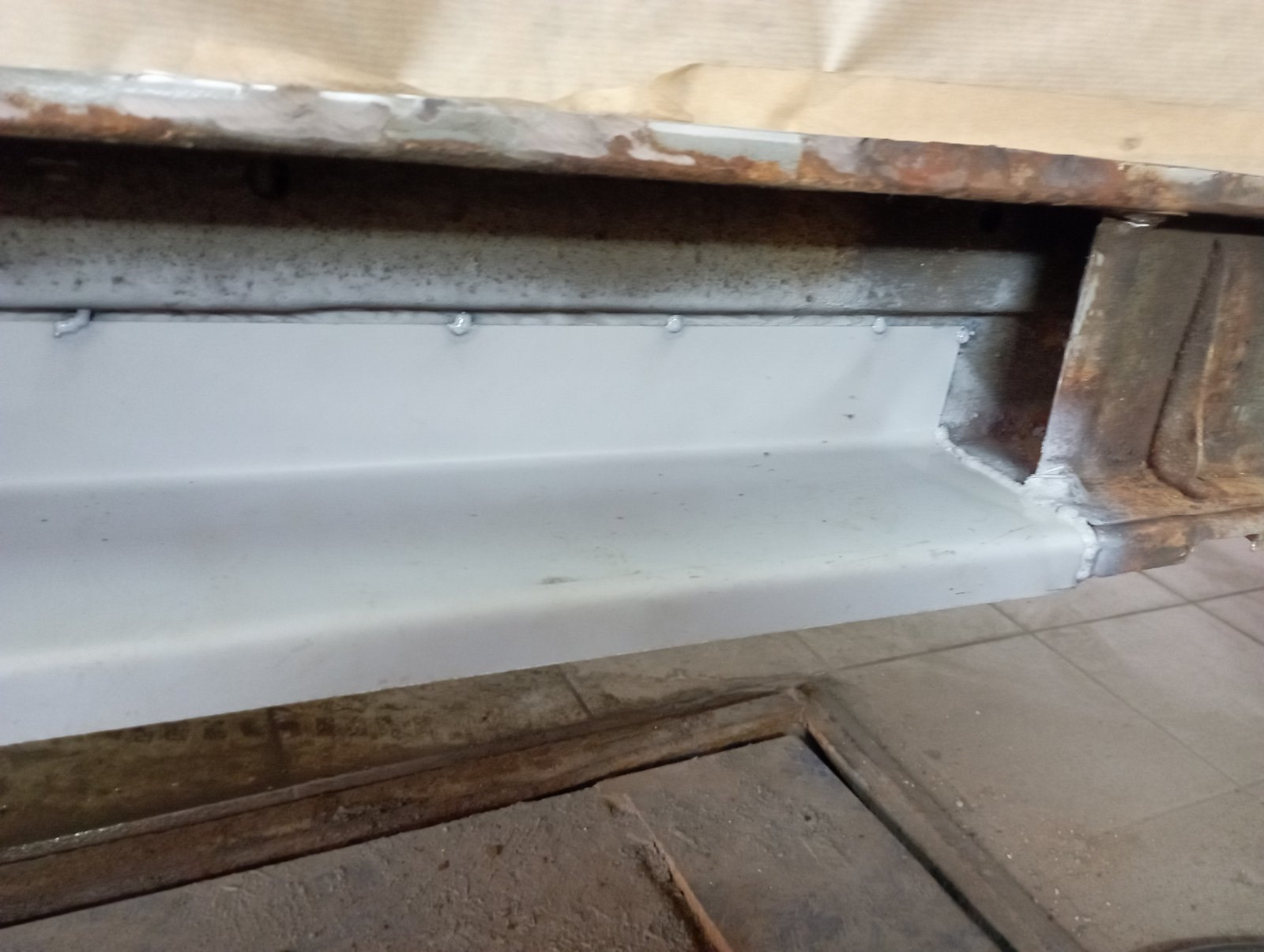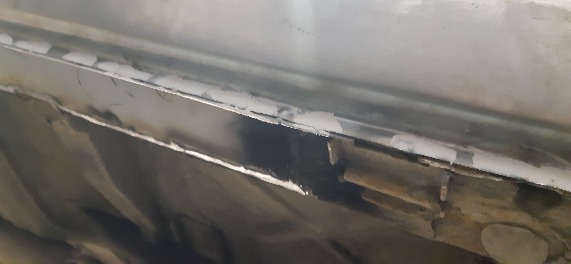 Жаль, что приварив накладки, не сформировали выгнутые отверстия по центру и краям, в нижней части, где накладки порогов привариваются к коробу — через них было удобно летом промывать короба и заливать антикор.