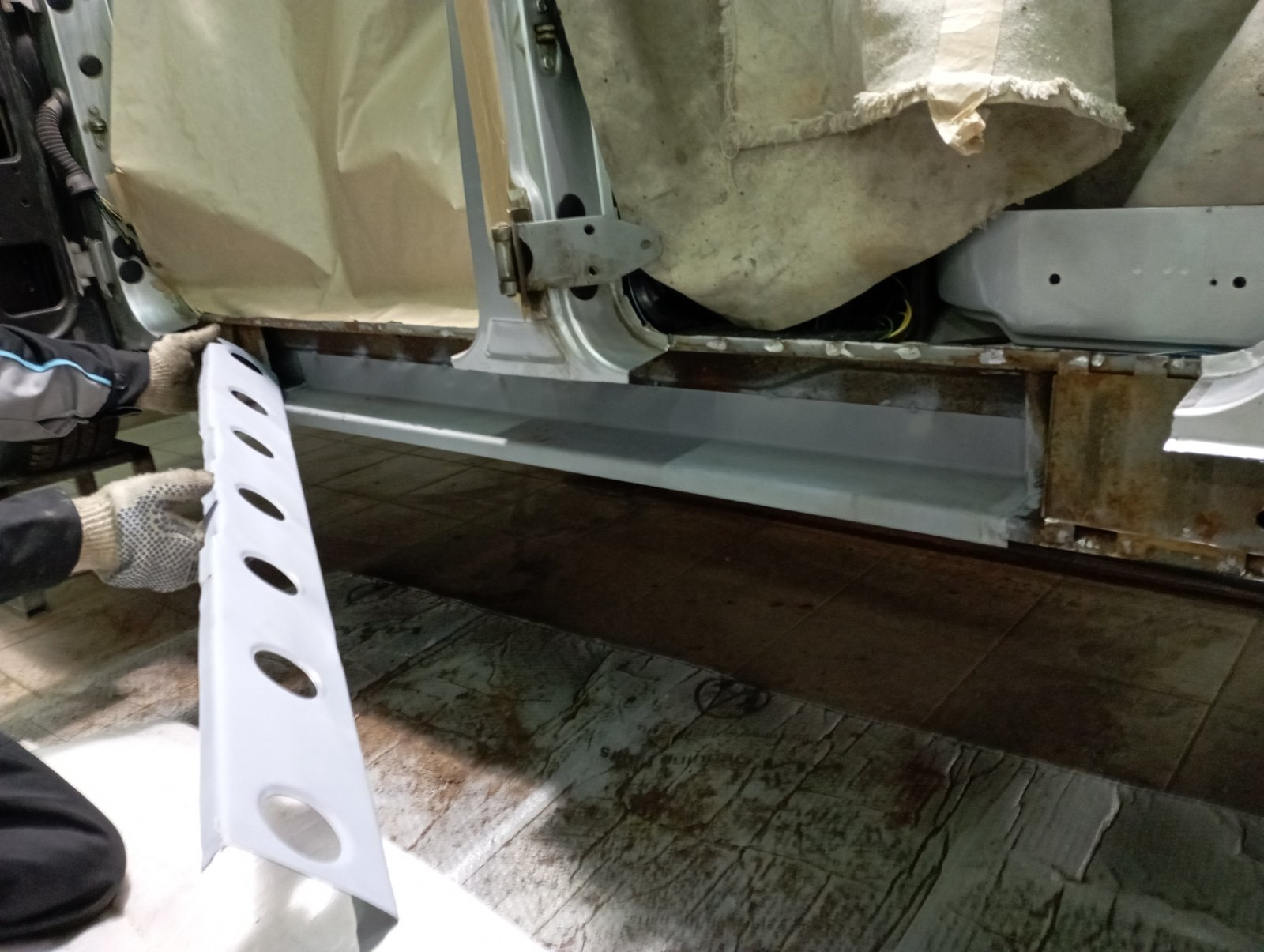 После установки ремвставок и усилителей были приварены и накладки порогов.