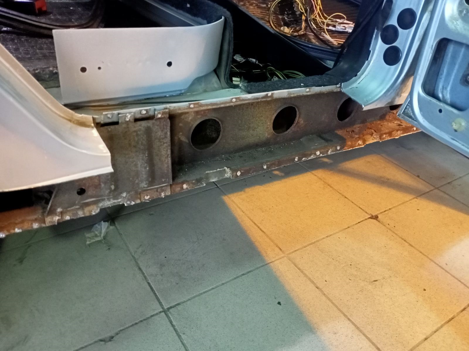 Поэтому, посовещавшись с кузовщиками, решено было делать ремвставки и вваривать их. Изготовлением занимались они же, по толщине и форме повторены заводские.