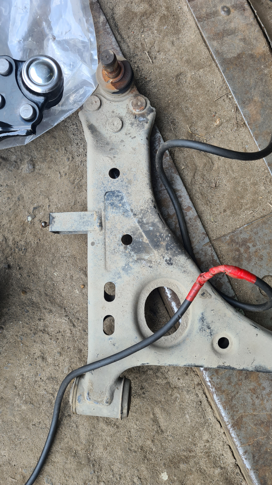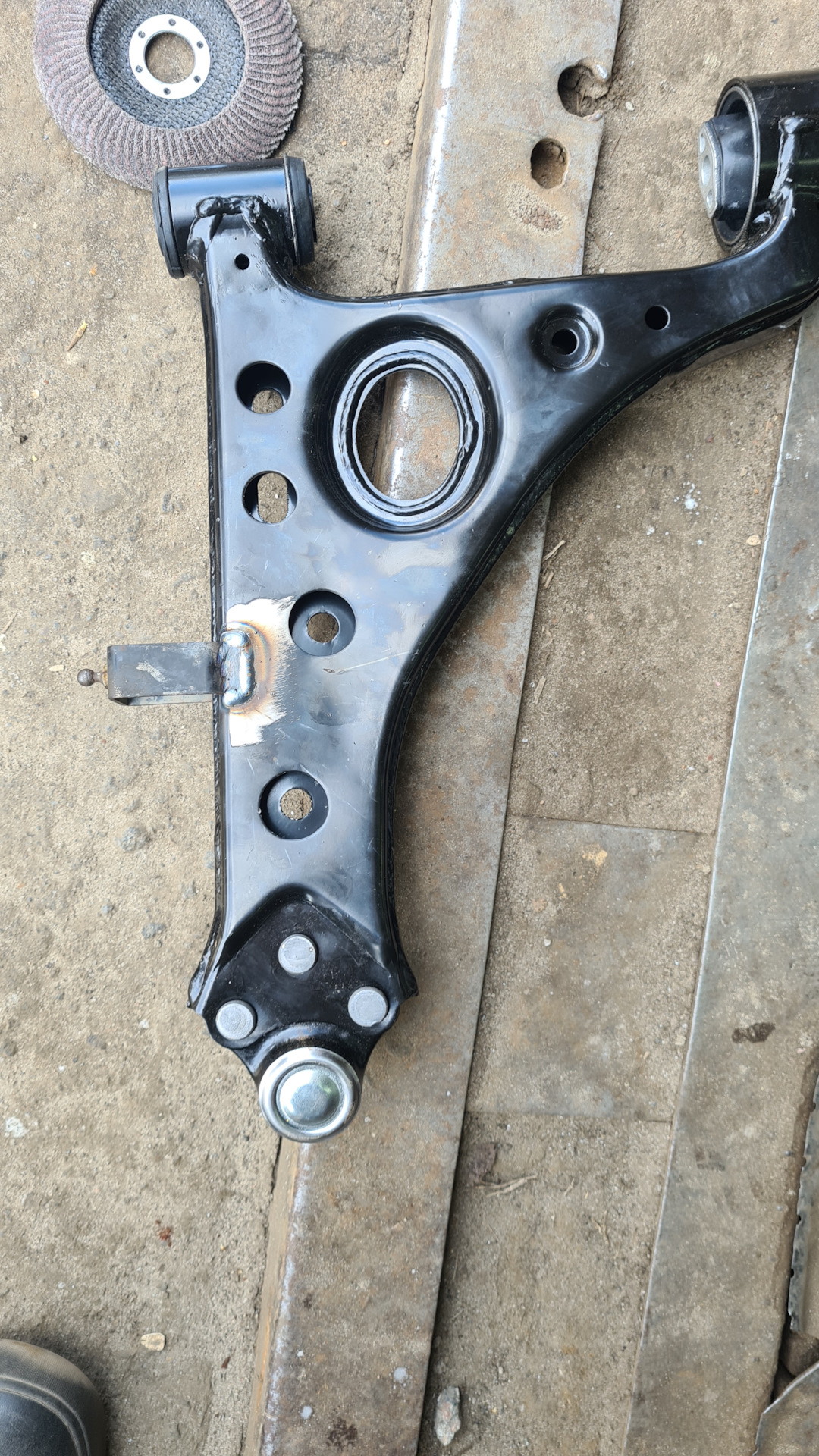 После снятия старых рычагов возник неожиданный "сюрприз" — оказалось, что на старом оригинальном рычаге есть площадка под датчик для регулировки уровня фар, а на новом рычаге такой площадки нет, но при помощи болгарки и сварки был проведен тюнинг)))