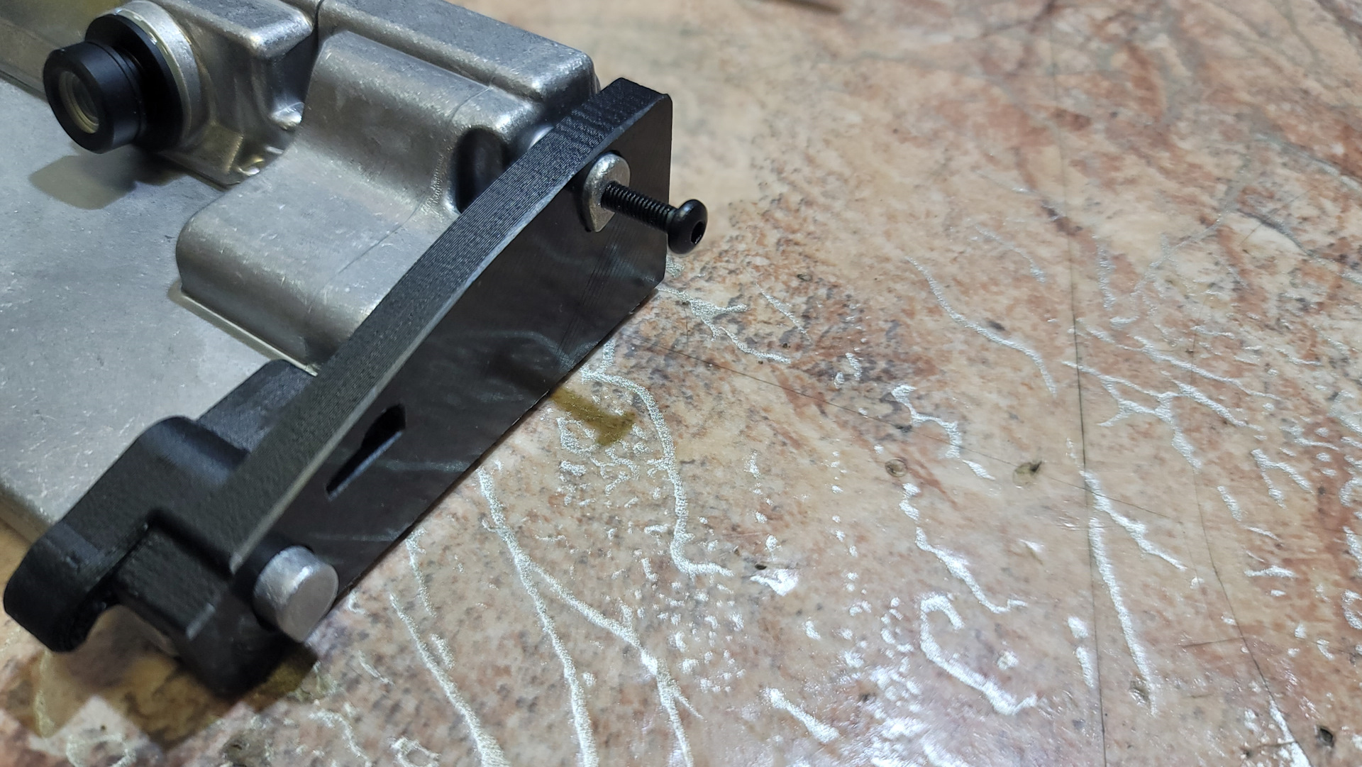 Для фиксации камеры нужно удлинить ухо, просверлить отверстие и нарезать резьбу я вкрутил бобышку.