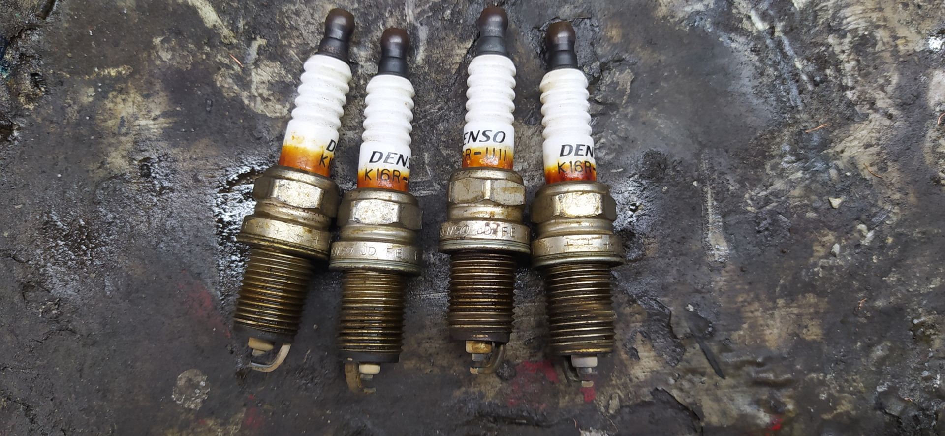 Свечи менял, так как электрод уже был изношен и был зазор немного больше, жёлтое на ободке свечей это нормально газы немного пробивают.
