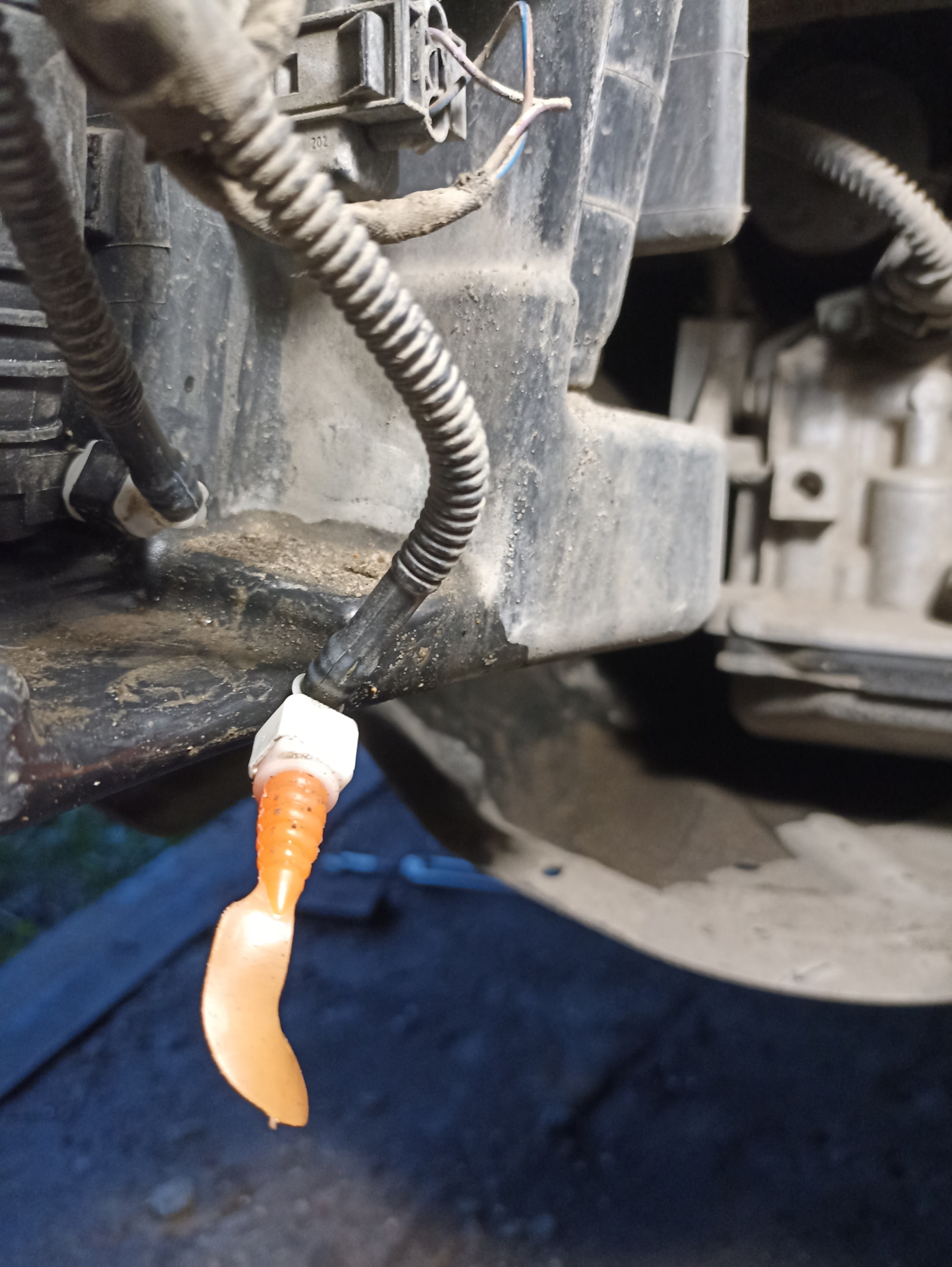 Ну и так как я немного "рыбак", для заглушки линии подачи омывателя заднего стекла, идеально подошла приманка твистер! 😁