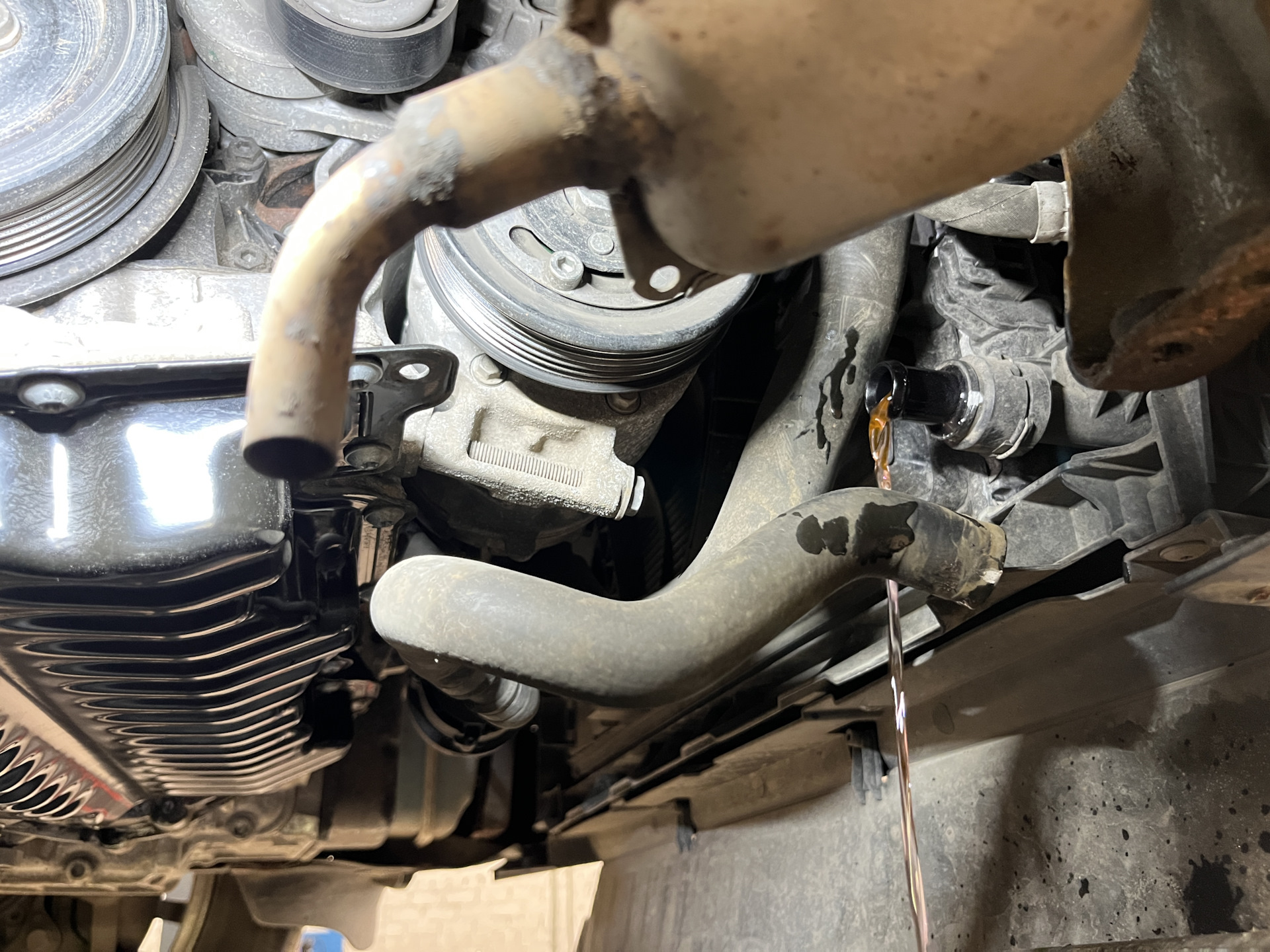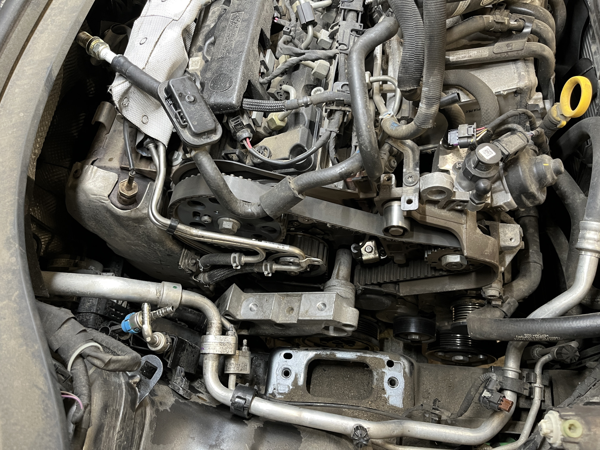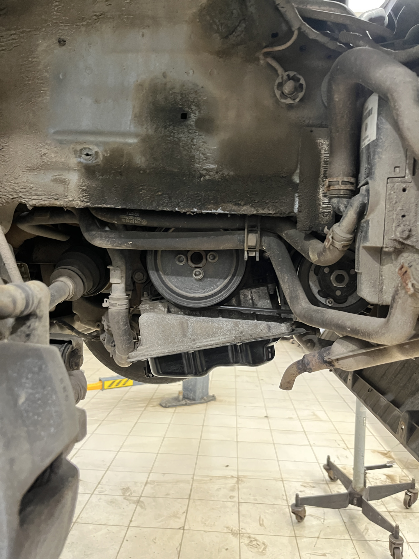 После снятия защиты ДВС, снимаем шубу с поддона ДВС. Так как будем использовать домкрат…После, снимаем подкрылок, выпало большое количество листвы и всякой нечести…Дальше видим такую картину, у кого установлена WEBASTO, будут мешаться шланги…Снятая шуба с поддона ДВС.Подвязываем шланги WEBASTO, снимаем приводной ремень…Приводной ремень снят, фиксатор шлангов WEBASTO тоже снят, откручиваем нижний болт кронштейна опоры ДВС…Теперь можно открутить крышку расширительного бачка.Помечаем положение шланга, для слива антифриза…Отсоединяем шланг и сливаем антифриз, после чего сразу ставим его назад и фиксируем хомутом.Приступаем к разборке верхней части, снимаем расширительный бачок.Отсоединяем топливные магистрали…Отсоединяем фиксатор топливных шлангов и фишку с датчика.Откручиваем корпус топливного фильтра и закидываем все наверх…Вот такой красивый вид мы имеем…Откручиваем опору ДВС…Вытаскиваем опору ДВС и откручиваем трубки охлаждения к крышке ГРМ…Снимаем верхний кожух ГРМ и откручиваем болты кронштейна опоры ДВС…Вытаскиваем болты крепления кронштейна опоры ДВС…Желательно снять шланги ОЖ, для комфортного извлечения кронштейна и замены ремня ГРМ…Шланги отсоединили, теперь можно снять кронштейн опоры ДВС…Снятый кронштейн с болтами, для тех кто не помнит какой болт куда…Далее видим такую красоту…Снимаем 4 болта крепления шкива коленвала…Сняли шкив коленвала…Снятый Шкив коленвала…На шкиве коленвала есть специальная метка ВМТ, для удобства ее можно пометить канцелярской замазкой…После чего устанавливаем шкив назад и совмещаем метку на нижней крышки ГРМ с меткой на шкиве, далее берем 2 сверла на 6мм и фиксируем шестерню распредвала и ТНВД…Метка шкива коленвала и крышки ГРМ…Снимаем нижнюю крышку ГРМ…Помечаем положение ремня ГРМ канцелярской замазкой…Помечаем положение ремня ГРМ на звезде распредвала…Помечаем положение ремня ГРМ на ТНВД…Метка на ТНВД…Ставим метку положения звезды коленвала, относительно блока ДВС, так как у нас нет фиксатора звезды коленвала…Все метки нанесены, можно приступать к разборке…Ослабляем натяжной ролик ремня ГРМ…Откручиваем и снимаем верхний ролик ремня ГРМ…Далее откручиваем и снимаем нижний ролик ремня ГРМ…Снятые ролики ГРМ…Теперь снимаем ремень ГРМ…Сняли ремень…Снятые ролики за 122000 пробега они в ужасном состоянии, издают посторонний звук при вращении и имеют повышенный осевой люфт и дребезг…Отсоединяем фишку насоса ОЖ…Откручиваем насос ОЖ…Снимаем насос ОЖ и сливаем оставшеюся жидкость…Обрабатываем прилегающую поверхность между блоком ДВС и помпой скотч брайтом…После обработки поверхности прилегания помпы, можно устанавливать новую…Старая помпа и ролики ремня ГРМ…Новая оригинальная помпа…Фотографии помпы, если вдруг кому нужны…Фотографии помпы, если вдруг кому нужны…Фотографии помпы, если вдруг кому нужны…Фотографии помпы, если вдруг кому нужны…Новая помпа установлена на свое место…Фиксируем фишку помпы…Новый ремень ГРМ…Фото оригинального комплекта ремня ГРМ…Фото оригинального комплекта ремня ГРМ…Фото оригинального комплекта ремня ГРМ…Фото оригинального комплекта ремня ГРМ…Фото оригинального комплекта ремня ГРМ…Фото оригинального комплекта ремня ГРМ…Приступаем к монтажу натяжного ролика ремня ГРМ, в блоке есть специальный паз, д